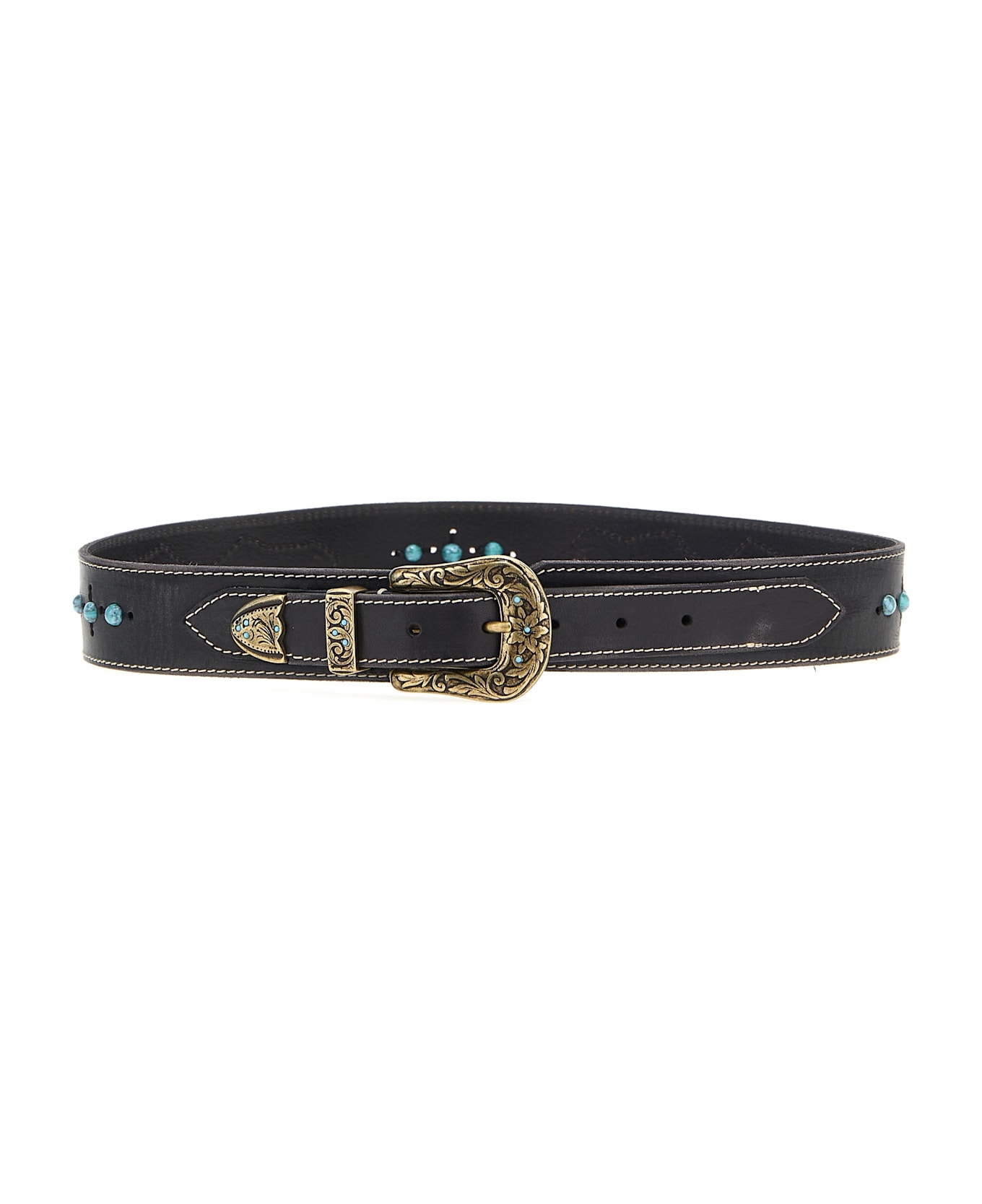 'Texan' leather belt with stone appliqué and contrast leather details, metal buckle.