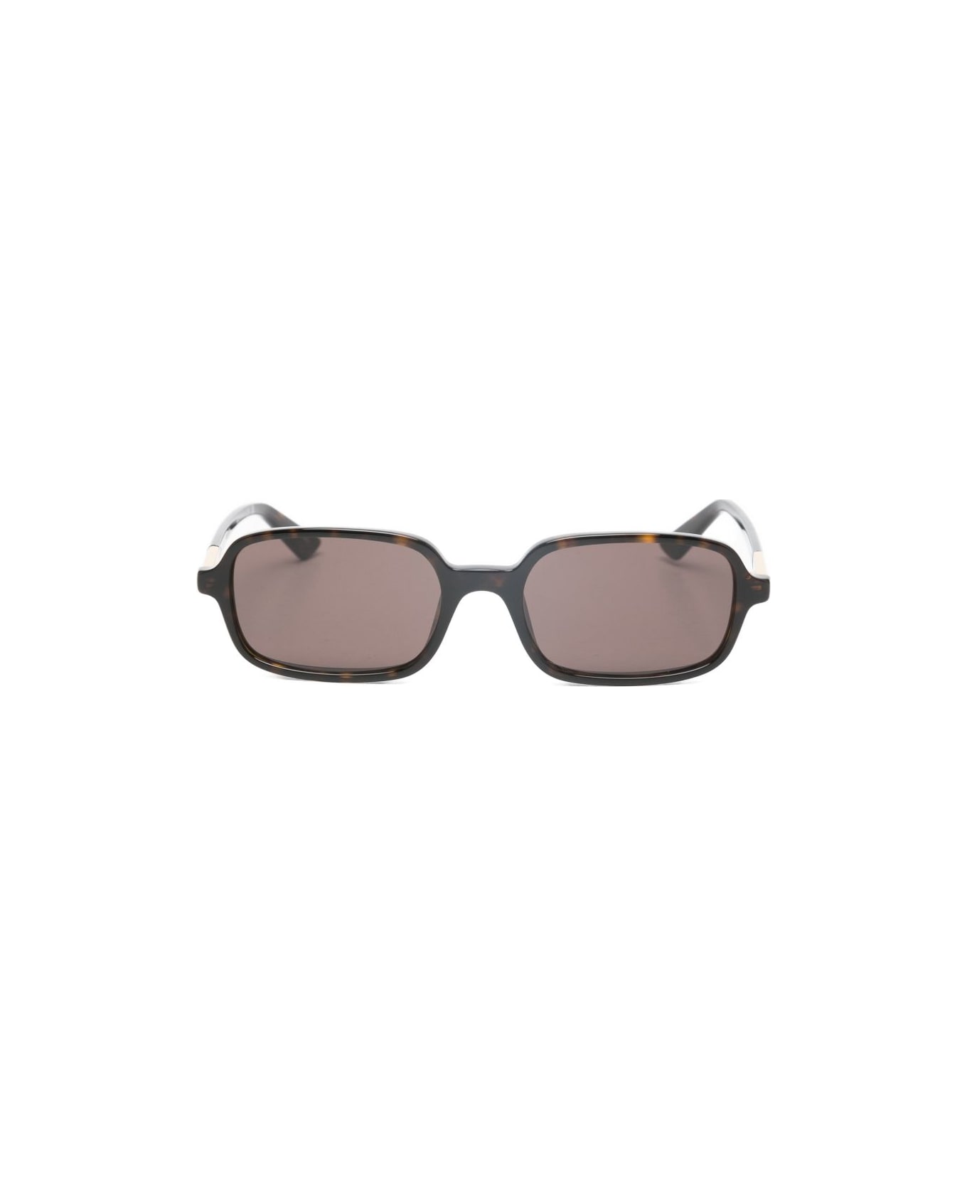 brown rectangle frame gold-tone detailing tinted lenses nose pads These glasses come with a protective case. Composition: Acetate, 100%