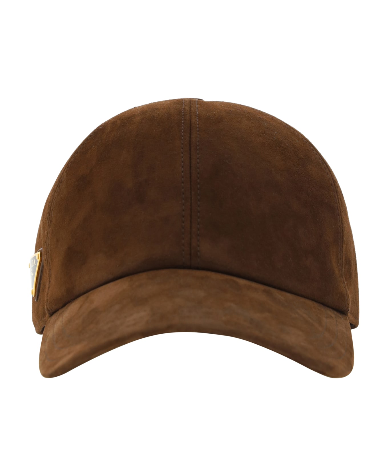 Leather baseball hat by prada, suede pattern, adjustable velcro closure at back, iconic brand logo applied in contrast on side. Composition: 100% % Lamb Ovis Aries Aries