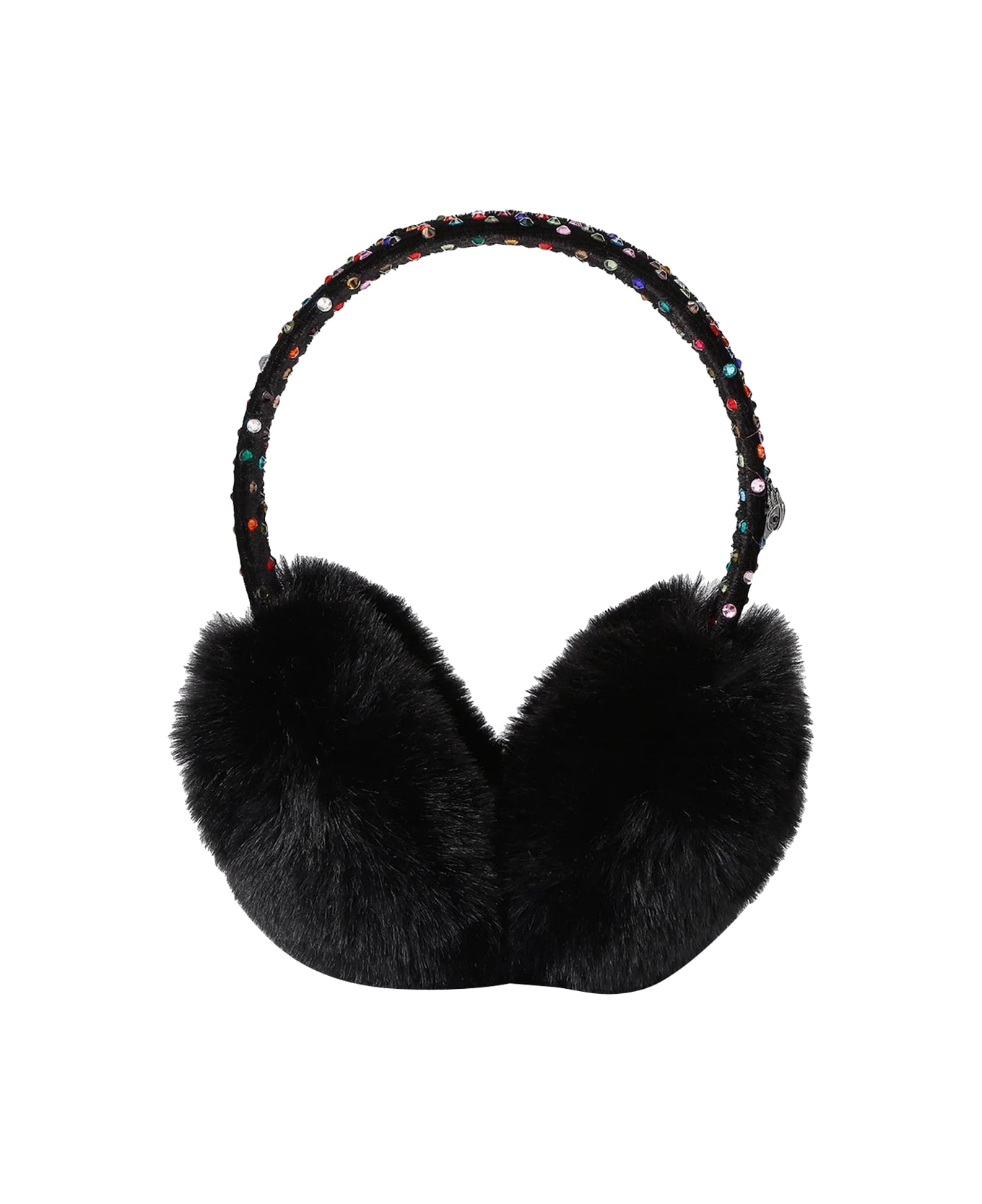 Kurt Geiger black Faux Fur earmuffs, strass allover