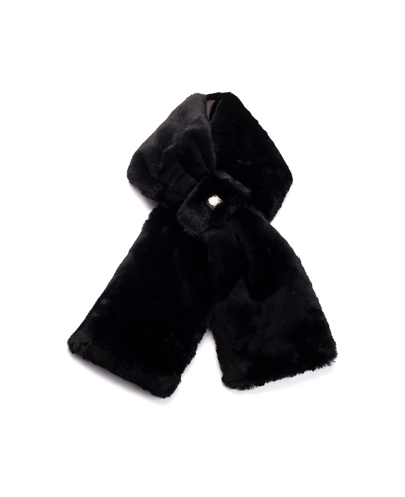 Black faux fur scarf from Moose Knuckles.