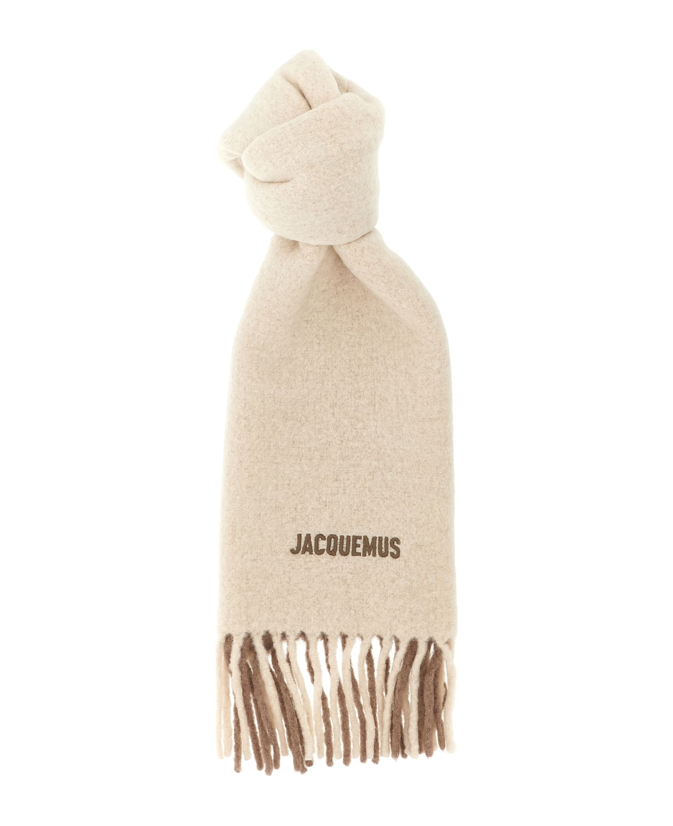 'L'Echarpe Moisson' scarf in degradé alpaca wool with logo embroidery and fringes on the edges.