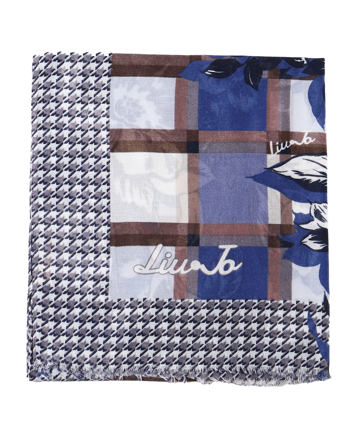 -Lightweight scarf -Floral decoration -Pounded houndstooth printed bag -Colour: Oxford blue
