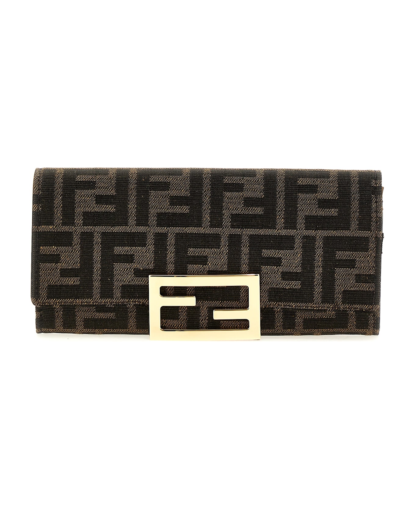 'Continental Baguette' wallet On Chain in FF jacquard fabric, leather lining, magnetic flap closure with metal logo buckle, removable chain shoulder strap.