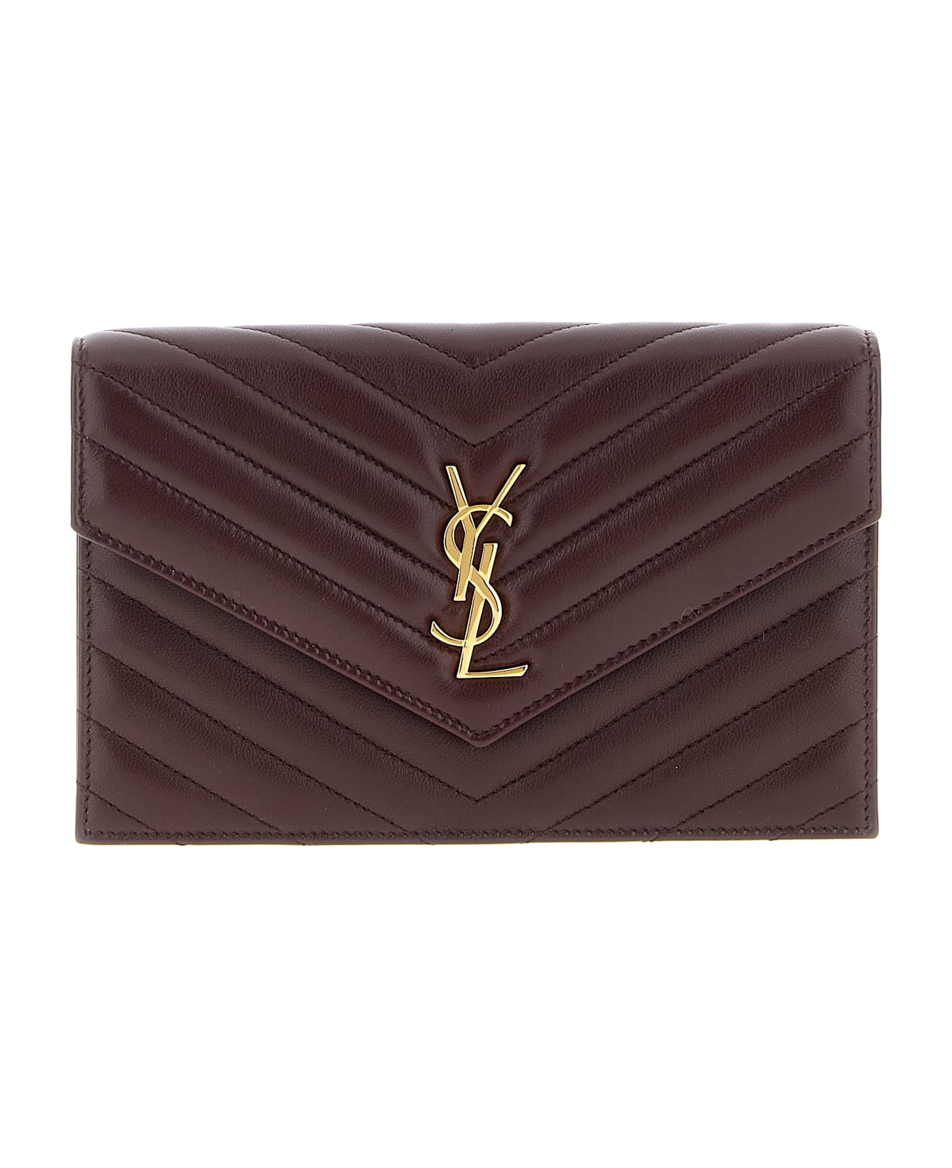 'Envelope Cassandre' wallet on chain in chevron quilted leather, flap closure with snap button, front metal logo, removable chain shoulder strap. Composition: 100% lamb leather (Ovis aries)