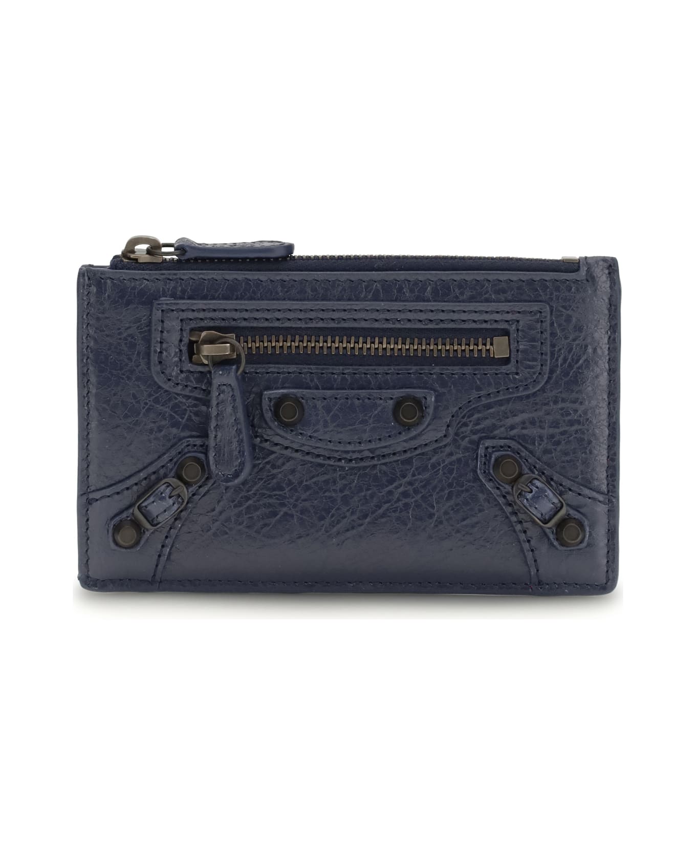 Le city long card holder by balenciaga combines functionality and distinctive style, with an elongated structure that integrates coin purse and card case. a tone-on-tone embossed balenciaga logo on the back adds understated detail, while brass hardware enhances the design. featuring a zippered front pocket, zippered coin purse, receipt compartment and five card slots, it is designed for practical and elegant organization.
