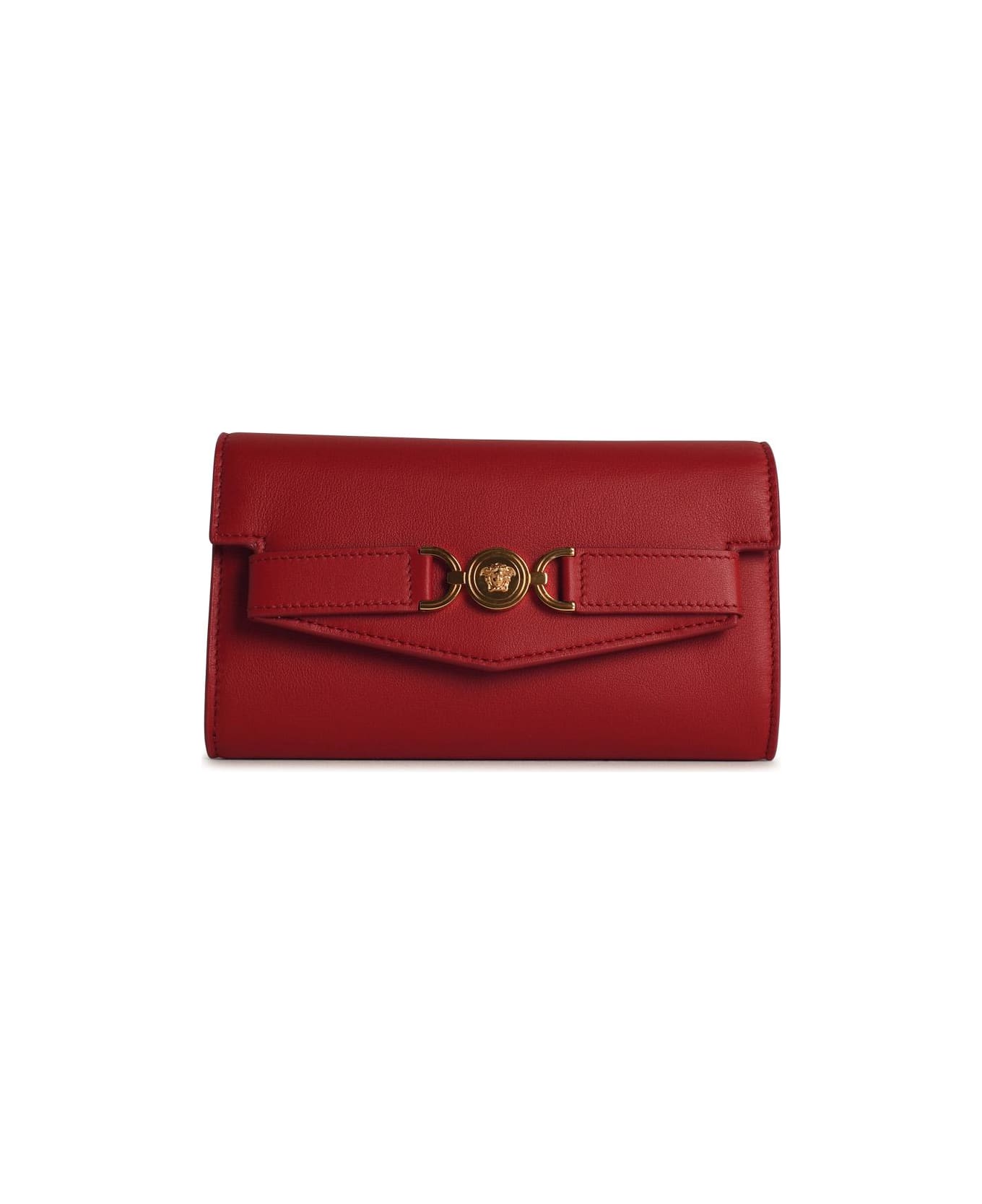 Magnetic button flap closure decorated with 'Medusa 95', removable chain shoulder strap, inner compartment, flat pocket, embossed logo on the back\n18 x 11 x 4 cm Composition: 100% calfskin leather