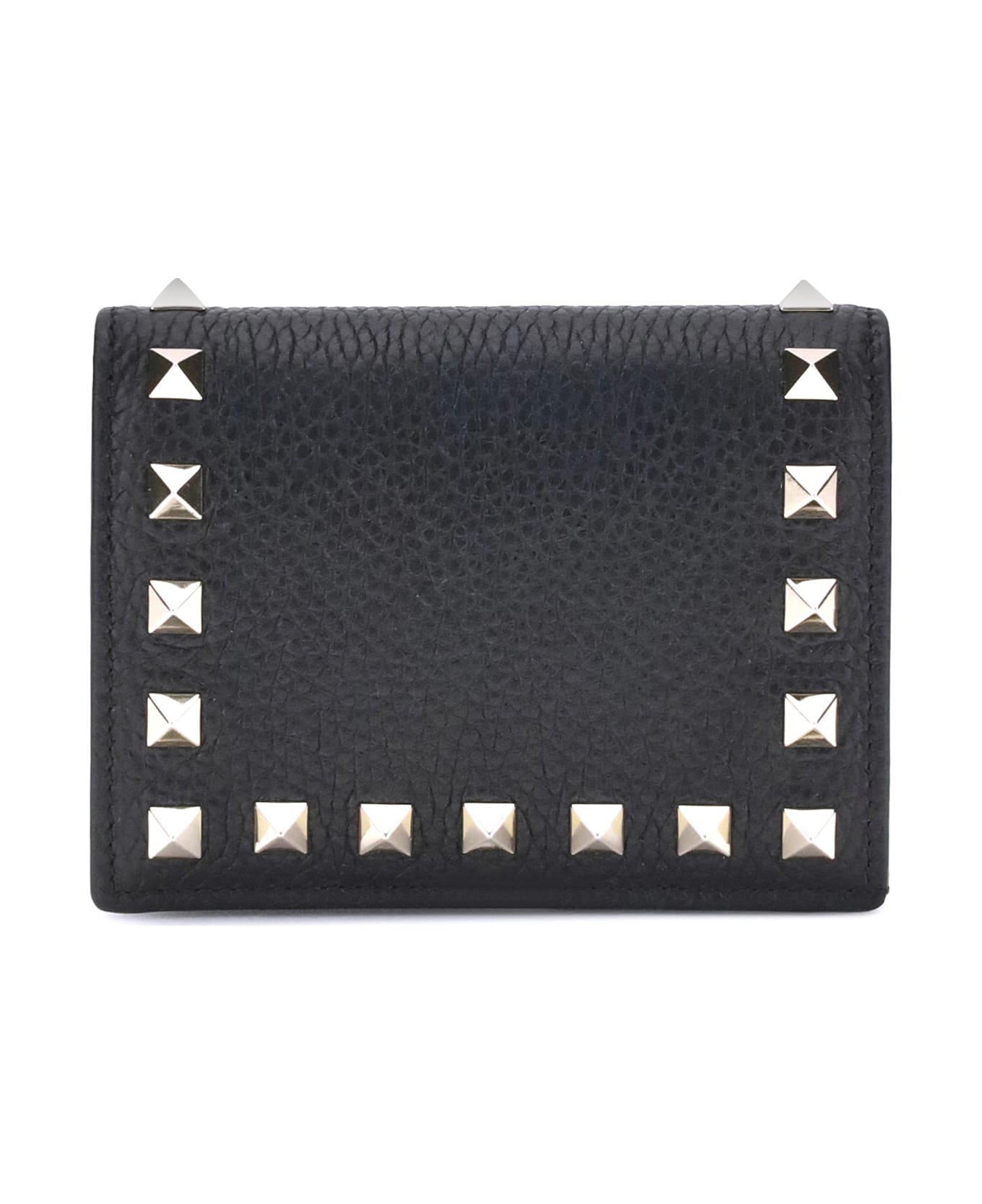 The rockstud leather wallet by valentino garavani is the perfect accessory for those seeking style and functionality. featuring the iconic rockstud studs along the edges, this bifold model has the logo printed on the back, adding a distinctive touch. inside, it offers six card slots and a pocket for bills, combining practicality and luxury in a single design. Composition: 100% % Calf Leather Bos Taurus