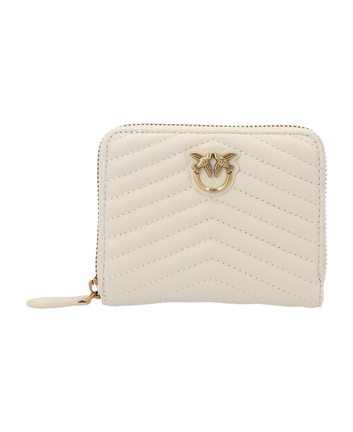 Taylor' quilted leather wallet with zip closure and a metal logo appliqué at the front.
