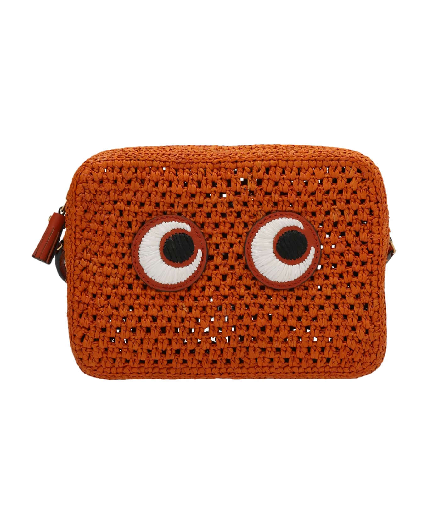 Raffia 'Eyes' crossbody bag with front embroidery, zip closure and a leather shoulder strap.