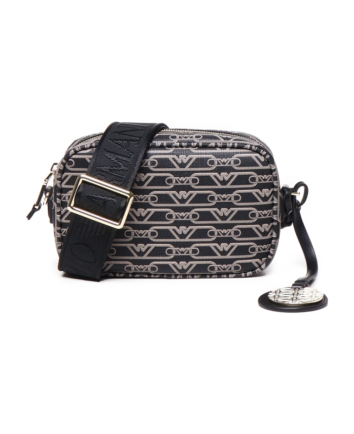 -Shoulder bag in synthetic leather -Jacquard logo pattern -Upper closure with zip -An open pocket on the back -Removable and adjustable shoulder strap -Shoulder strap length: 70-120 cm -A main compartment -Measurements: 20 x 13 x 6 cm -Colour: Black, Ecru