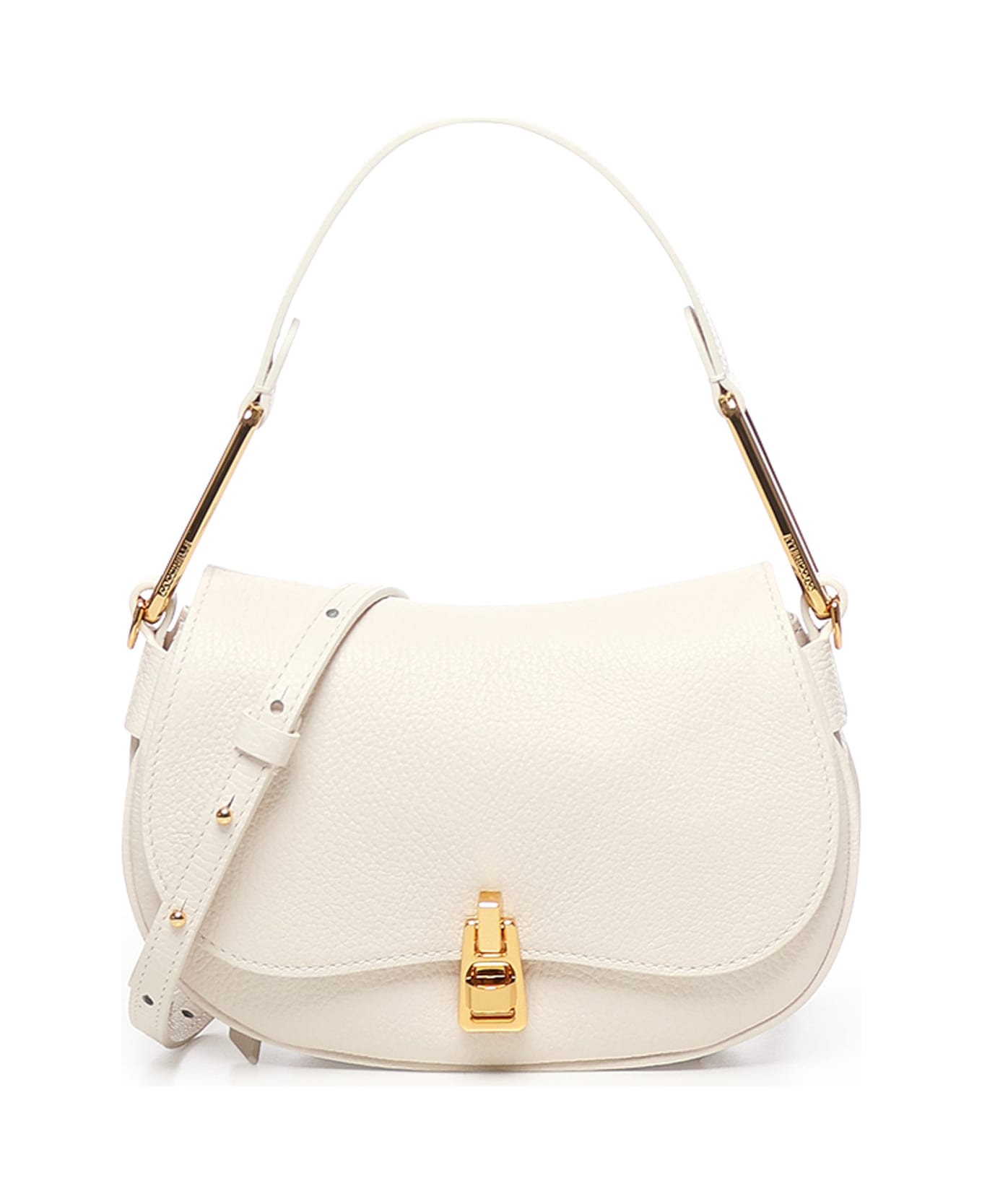 -Made of grained leather -Swivel closure -Handle for portability -Adjustable and removable leather shoulder strap -Internal pocket closed with zip -Gold plating -Logo on accessory -Dimensions: 22 x 14 x 4 cm -Color: Off-White