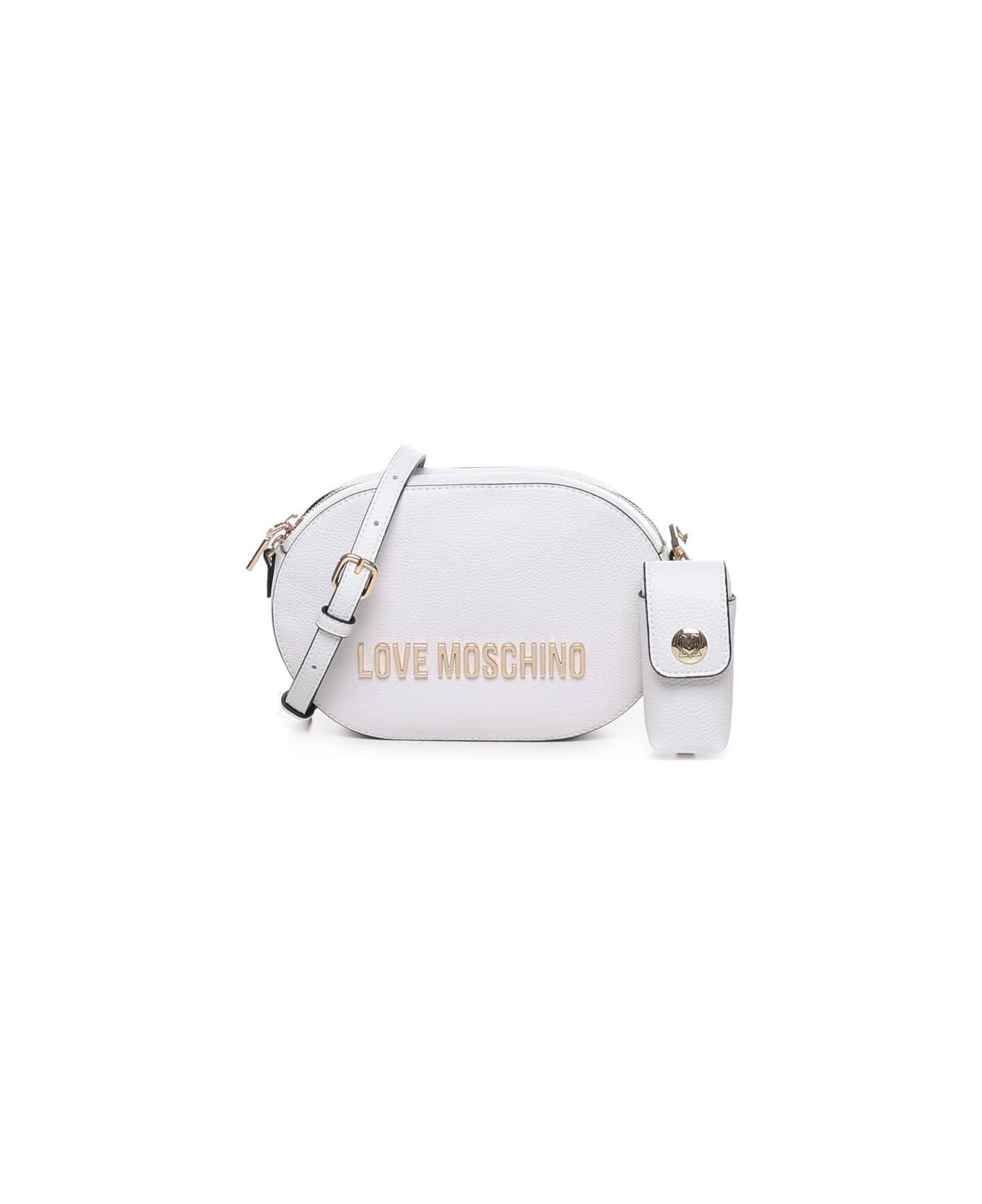 White Oval Bag from Love Moschino -Oval bag with adjustable shoulder strap -Pocket detail -Front logo -Measurements: 23x15x7 -Colour: White -100% Polyurethane