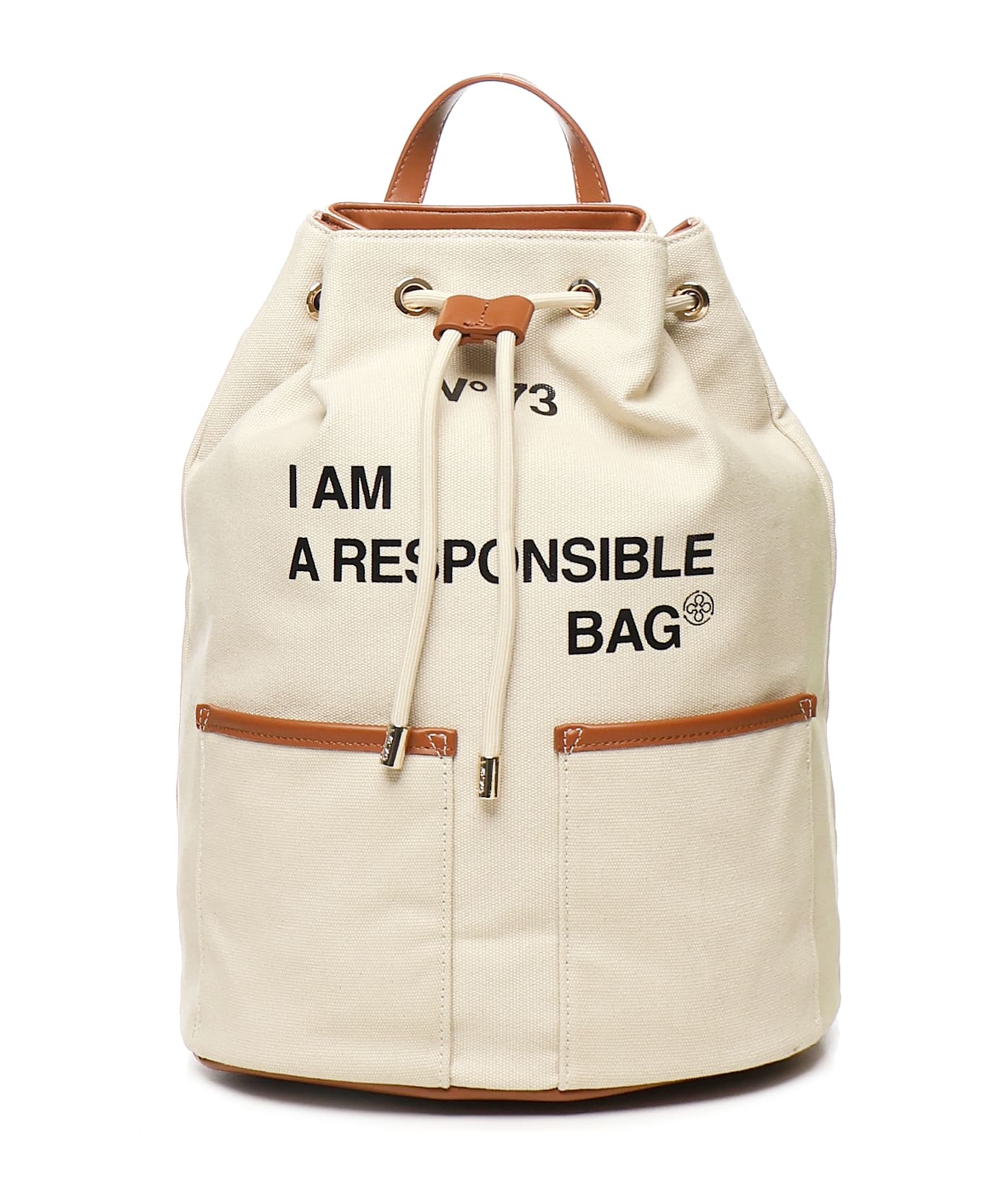 -Canvas canvas backpack -Adjustable shoulder straps -Custom drawstring closure -Slogan print -Pockets on front -Colour: Natural