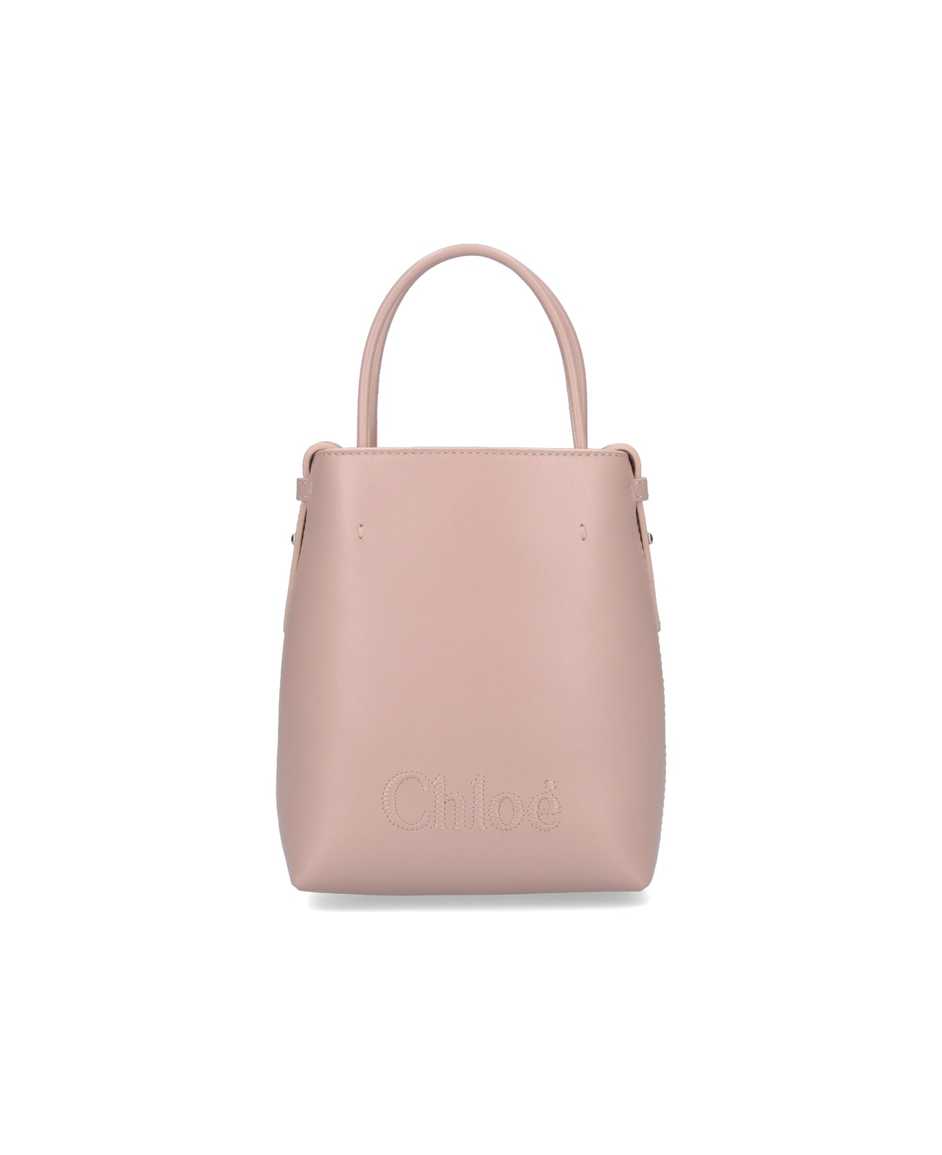 Chloe 'Sense' micro bag in pink leather with two rigid top handles, adjustable shoulder strap, tonal logo embroidery on the front, main inner compartment. Composition: 100% Calf Leather