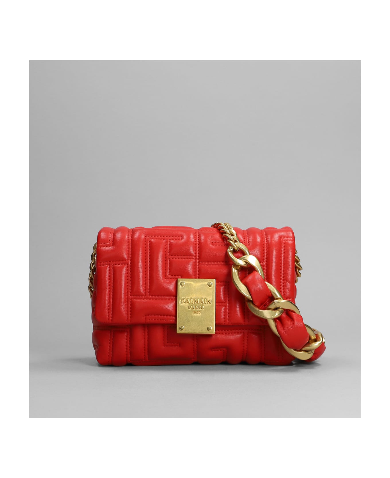 1945 Shoulder bag in red leather, Height 115 mm, Width 185 mm, Height 115 mm, Width 185 mm, chain and leather carry, clasp closure, gold hardware, quilted leather, 100% leather, Made in Italy