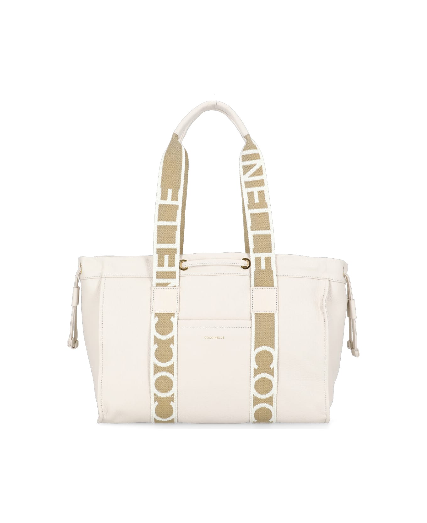 - Ivory Coccinelle leather shoulder bag for woman - Two contrasting color logoed handles - Two interior welt pockets - One interior zip pocket - Magnetic fastening