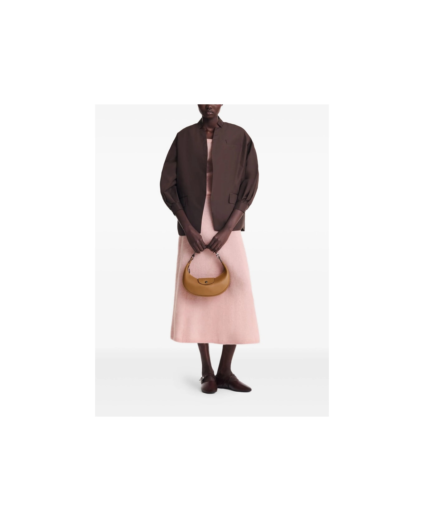 light brown signature logo hardware zip pocket detail front flap closure detachable shoulder strap