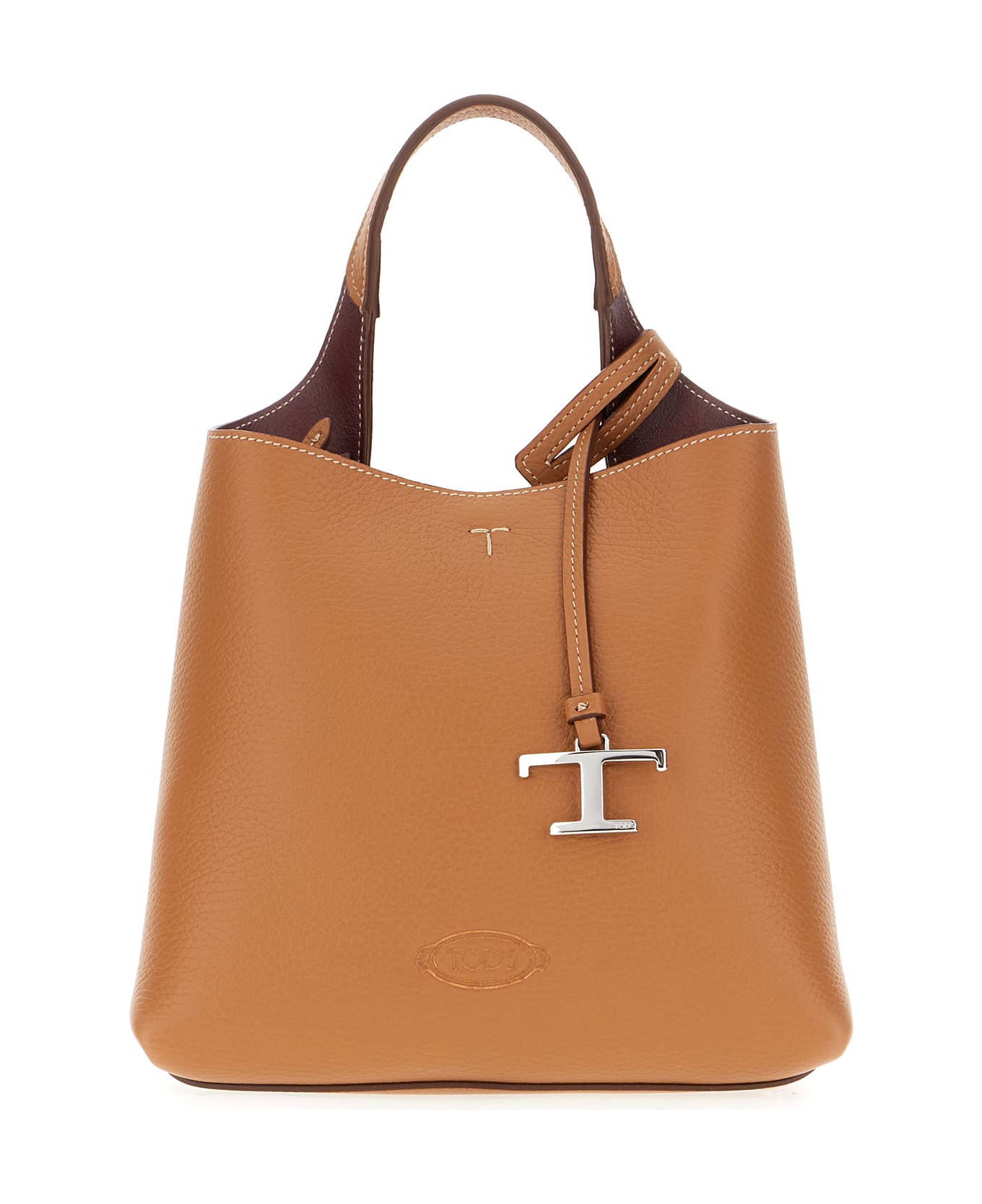 Handbag realized in pebble leather characterized by embossed logo at the front. -Built-in handle -Adjustable detachable contrasting leather shoulder strap -Hook closure -Contrasting lined interior with two compartment and a zip pocket -Protective metal feet at the base