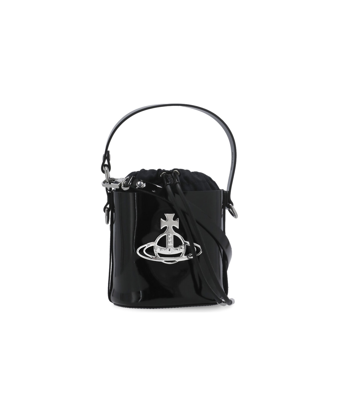 - Black Vivienne Westwood bucket bag for woman - Drawstrings fastening - One handle - Removable and adjustable shoulder strap - Front metal Orb logo