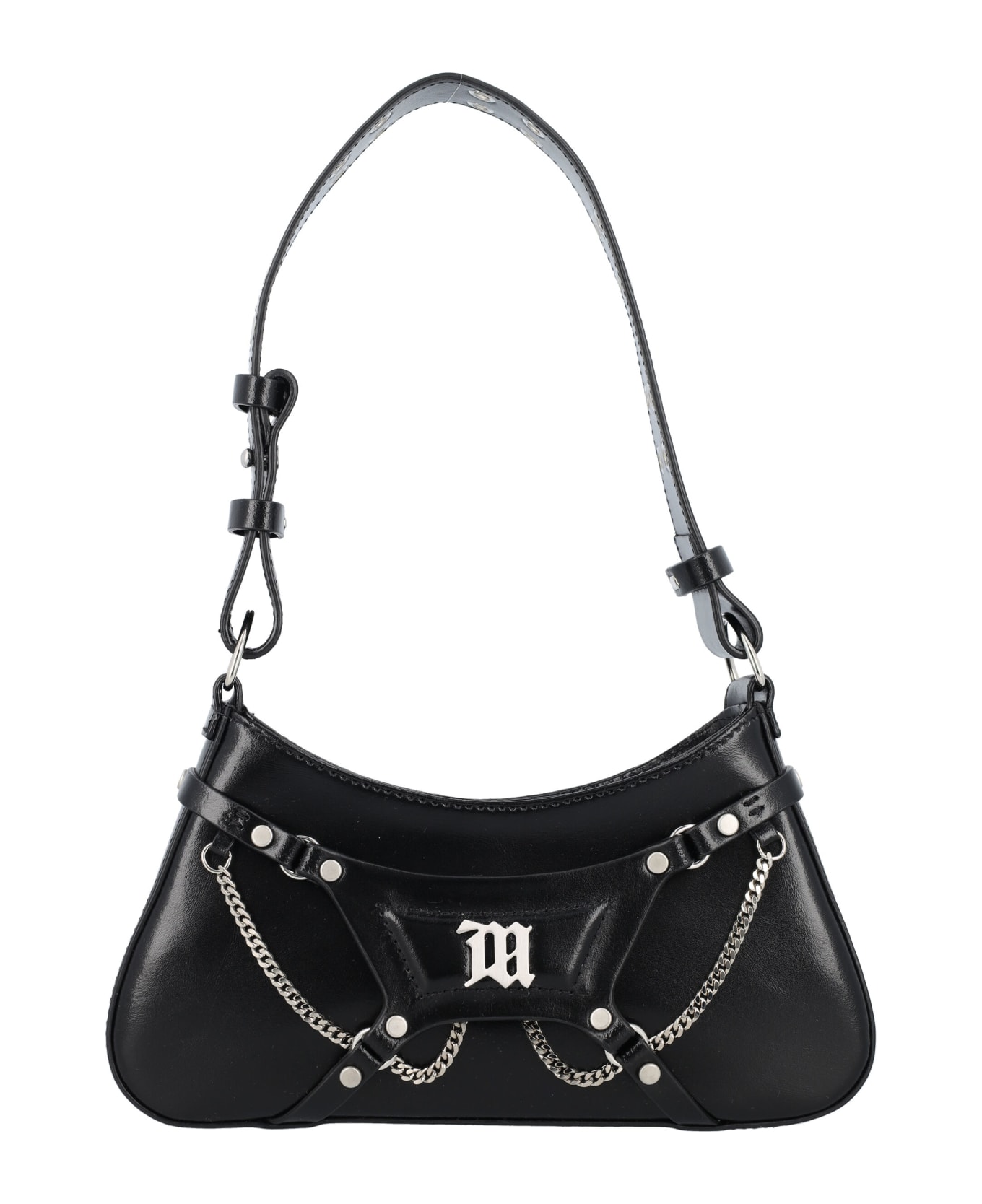 Fetish Shoulder Bag By Misbhv. Featuring: Shoulder Bag Crafted From Bovine Leather In Black Decorative Harness Embellished With Studs And Gothic M Logo Metal Chain At Front Zip Closure Main Compartment Shoulder Strap Decorated With Double Row Of Eyelets Height: 25cm Width: 13cm Depth: 4cm
