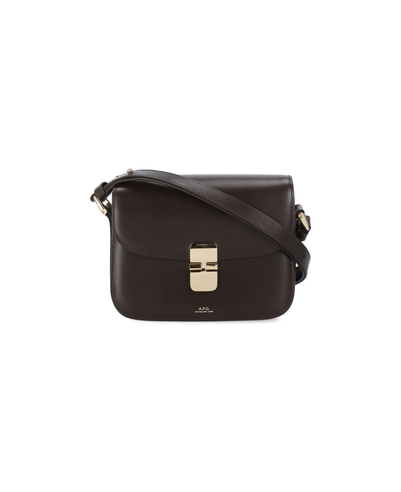 - Brown A. P. C. smooth leather woman's shoulder bag - One adjustable shoulder strap - Front interlock fastening with flap - Front contrasting color printed logo - One main compartment with two interior pockets