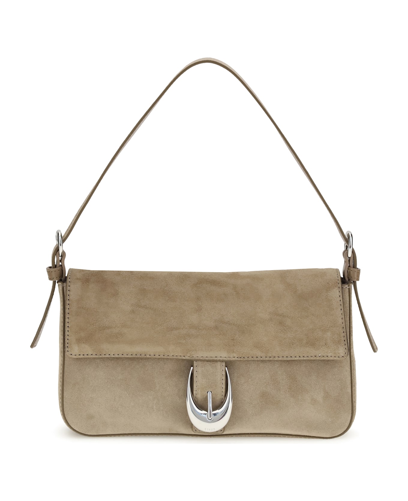 Staud's harlow shoulder bag stands out for its refined suede design and central moon-shaped buckle, an iconic and feminine detail. featuring a practical snap closure and interior pocket, it combines elegance and functionality in an accessory perfect for completing both casual and more sophisticated looks.