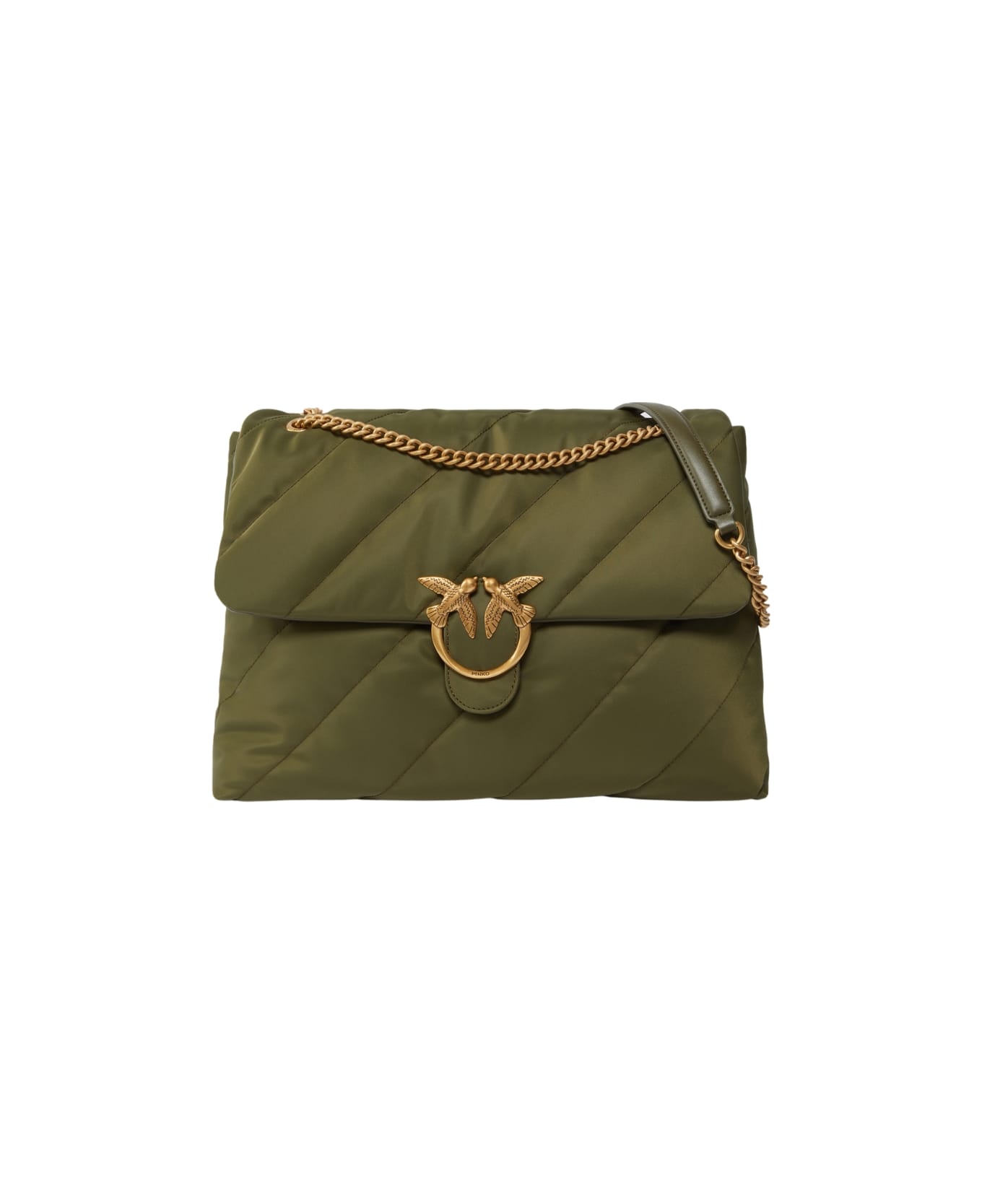 teflon women's bag: teflon technical fabric recycled fibres quilted front closure with metal love birds buckle metal chain shoulder strap and shoulder pad internal zip pocket interior lined in recycled polycotton composition: 100% nylon interior: 100% polyester