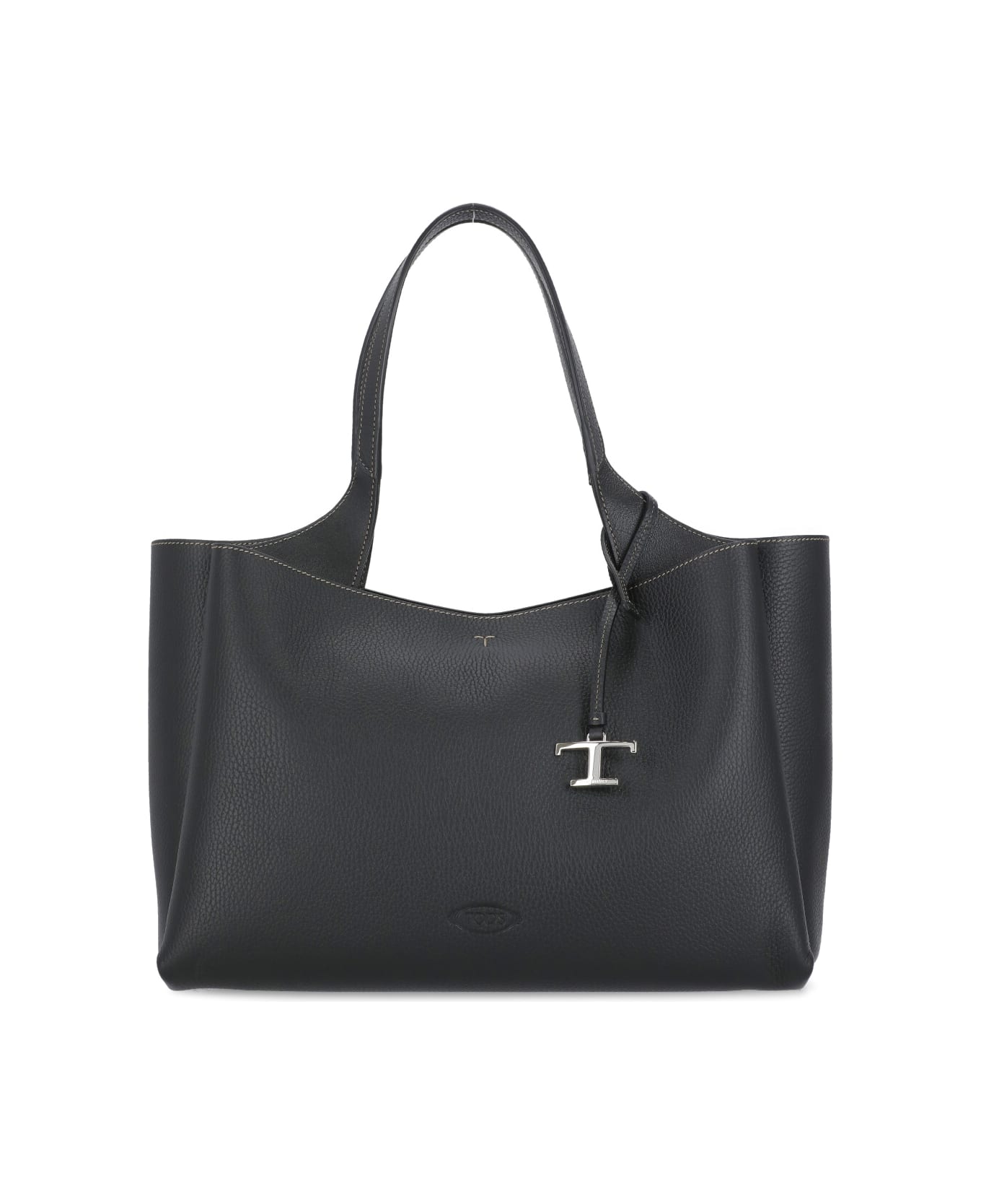 - Black Tod's leather shoulder bag for woman - Three main compartment - Two zip pockets - Two handles - Front tone on tone engraved logo - Removable metallic T logo - Internal hook fastening