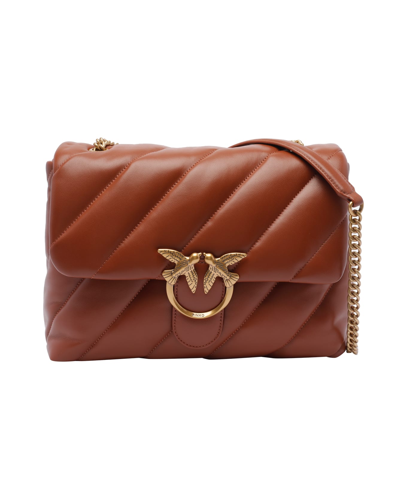 Pinko Light brown Love Classic Puffer shoulder bag, love classic puffer model, golden logo, magnetic interlocking closure, two compartments, one open and the other with magnet, inner zip pocket, one inner open pocket, strap