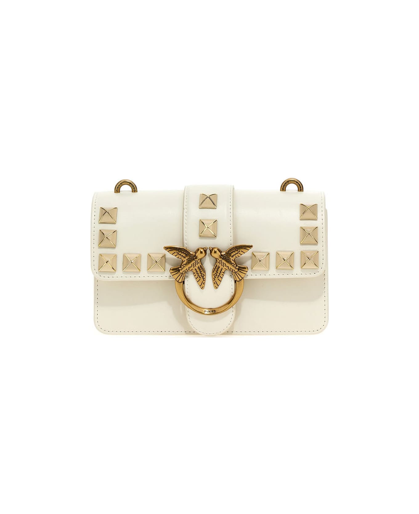 Love One Mini' leather crossbody bag with interlock closure, enamel stud applications, front metal logo, leather shoulder strap and a removable chain.