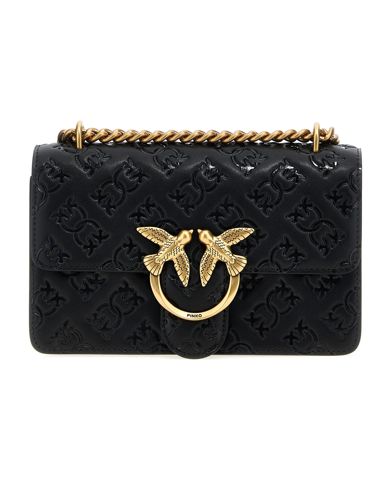 'Mini Love Bag' leather crossbody bag with all-over embossed logo pattern, magnetic flap closure, front metal logo application, chain shoulder strap with leather shoulder strap.