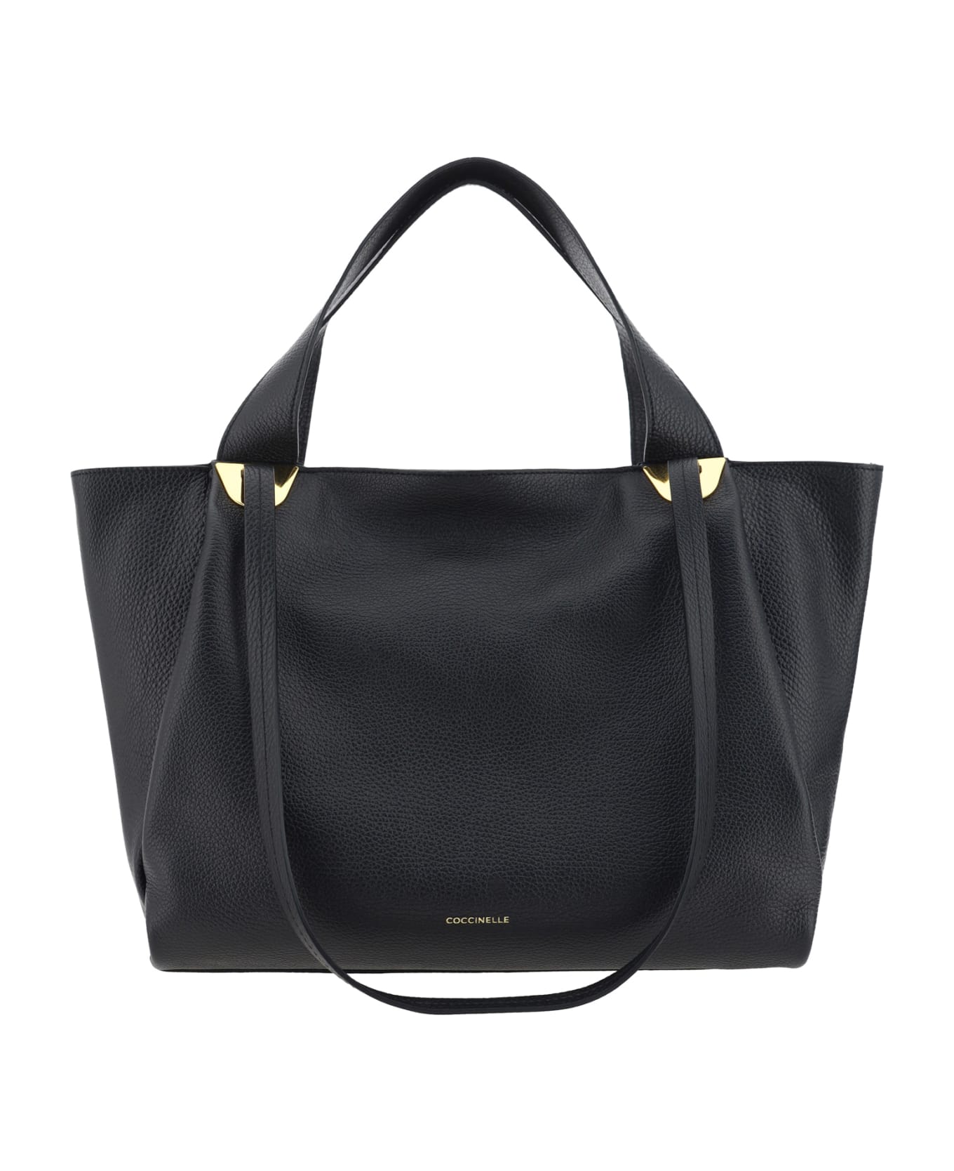 Calfskin oliver shoulder bag by coccinelle featuring double flat top handles, flat applique shoulders at the base of the handles, iconic brand signature press-stamped on the front, interior magnetic button closure, large single interior compartment, slit pocket with zipper for interior closure. Composition: 100% % Calf Leather Bos Taurus