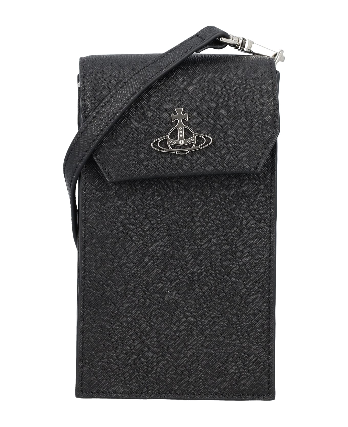 Phone Bag By Vivienne Westwood. Featuring: Saffiano Leather Iconic Orb Emblem On Flap Adjustable Shoulder Strap Snap Button Closure Multiple Card Slots At Backi Nterior Compartment For Phone Height: 17,5cm Width: 10,5cm Depth: 3cm