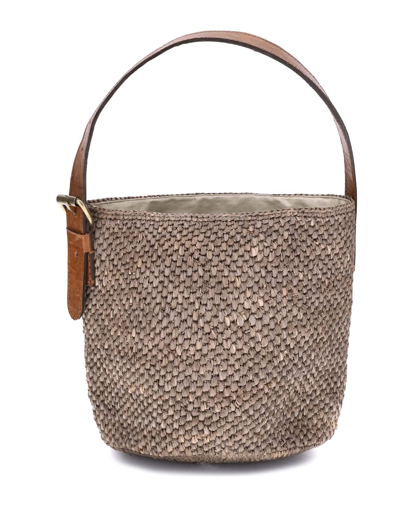 Ibeliv's lova bucket bag is made of natural raffia with an organic cotton interior flap, combining elegance and sustainability. the sliding closure and adjustable handle in vegetable-tanned leather add practicality and style. a versatile and refined accessory, ideal for the summer season and beyond. Composition: 100% % Raffia
