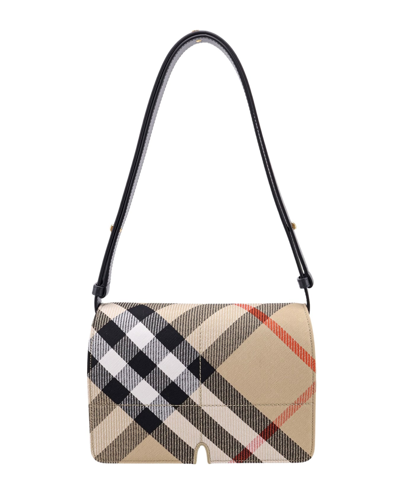 Fabric shoulder bag with Burberry check motif - Closure With Flap And Magnetic Button - Adjustable Leather Shoulder Straps - Three Internal Compartments - Made In Italy - 65% Polyester 35% Cotton
