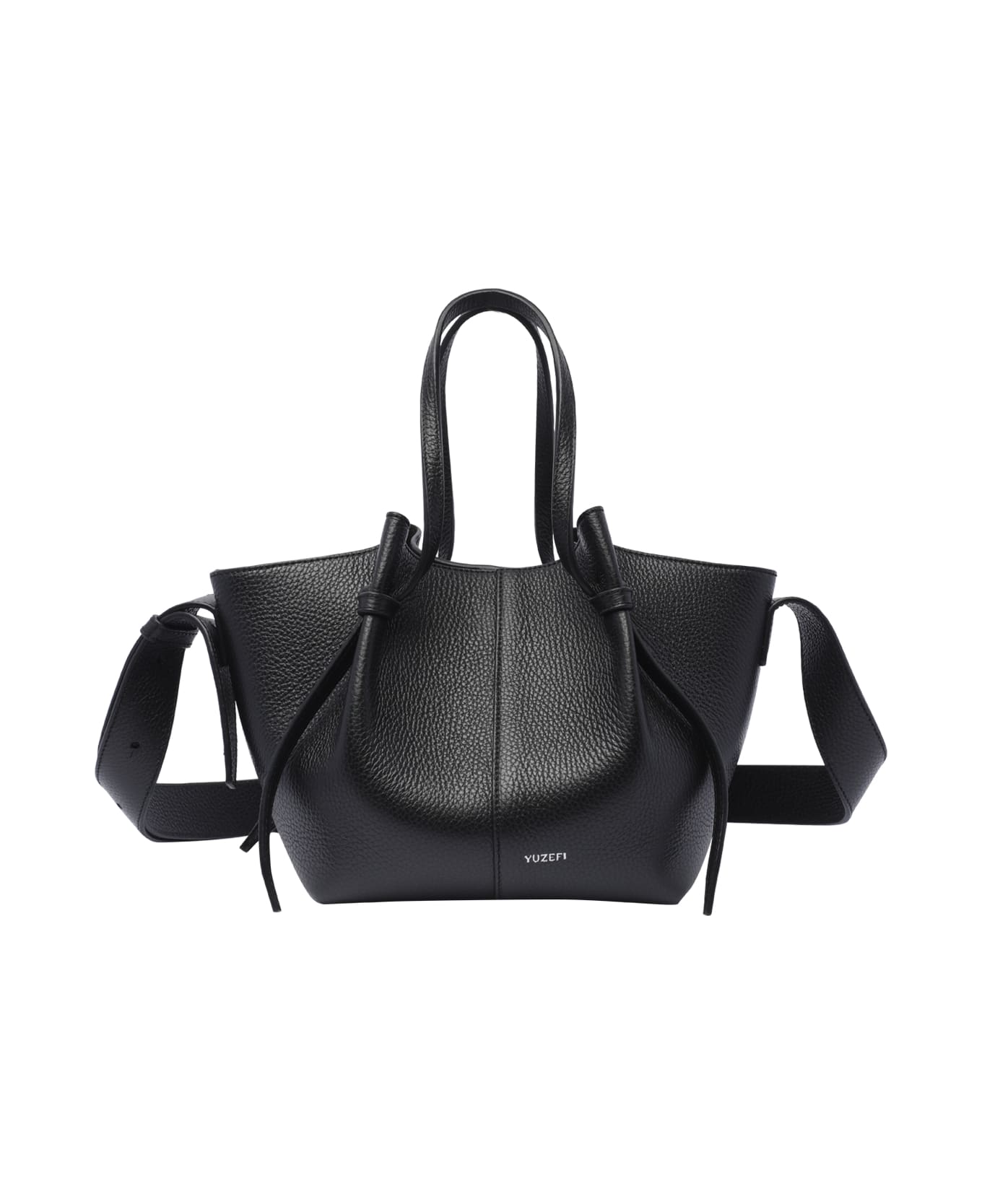 Yuzefi black Square Mochi crossbody bag, magnetic closure, 2 handles, adaptable strap