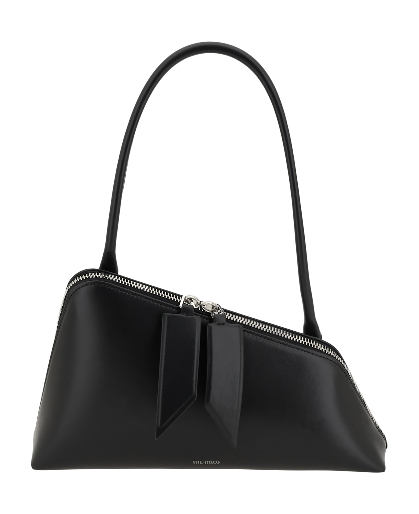 Leather sunrise shoulder bag by the attico, a rigid tubular top handle, double-slider top zipper closure, geometric sliders, iconic brand signature press-stamped on contrasting front, asymmetrical geometric bag. Composition: 100% % Calf Leather Bos Taurus