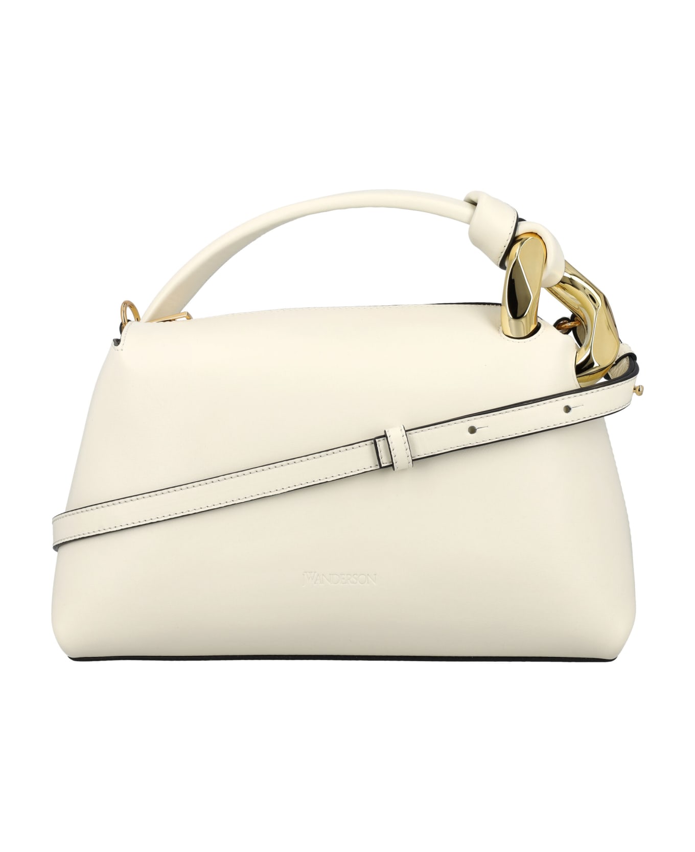 The Jwa Corner Bag By Jw Anderson. Featuring: Leather Construction Goldtone Chain Adjustable Shoulder Strap Top Zip Closure Spacious Interior Compartment Jw Anderson Logo Embossment Height: 16cm Width: 28cm Depth: 8cm Composition: 100% full grain calf leather lining, 100% polyester