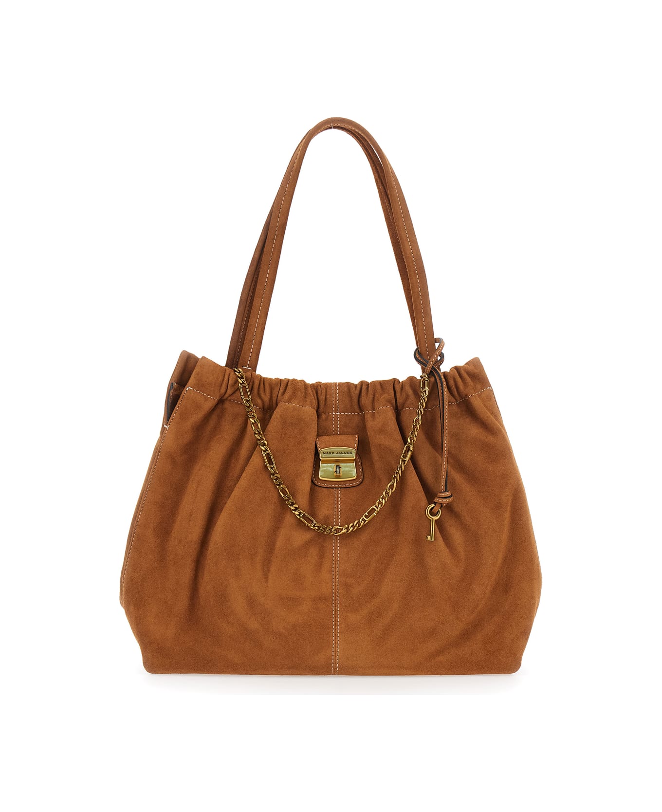 'the Tote' Brown Shoulder Bag With Chain Detail On The Front And Drawstring Closure In Suede Woman