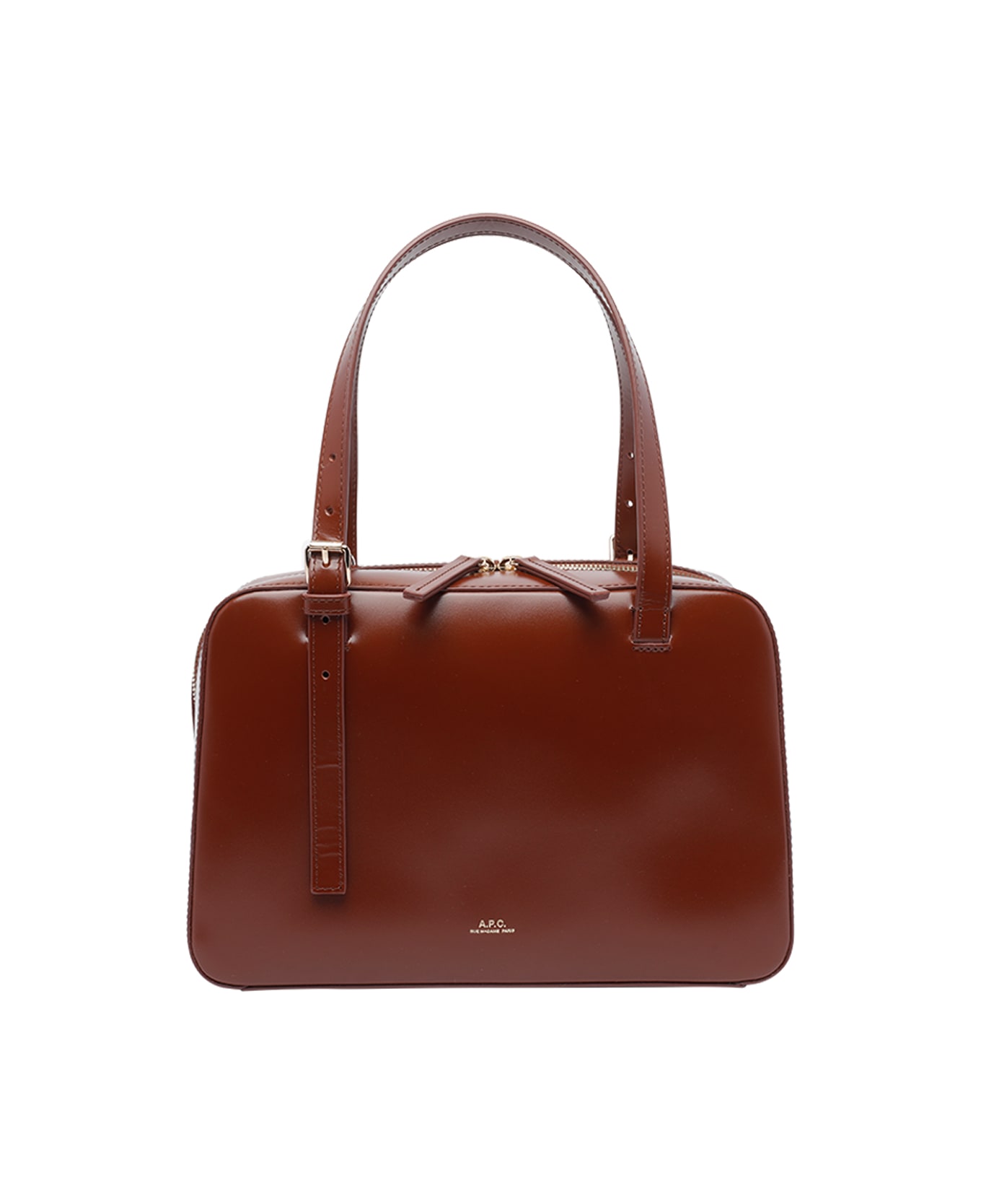 A. P. C. Virginie box bag, zip closure, inner open pocket, double adjustable handle, adjustable and removable shoulder strap
