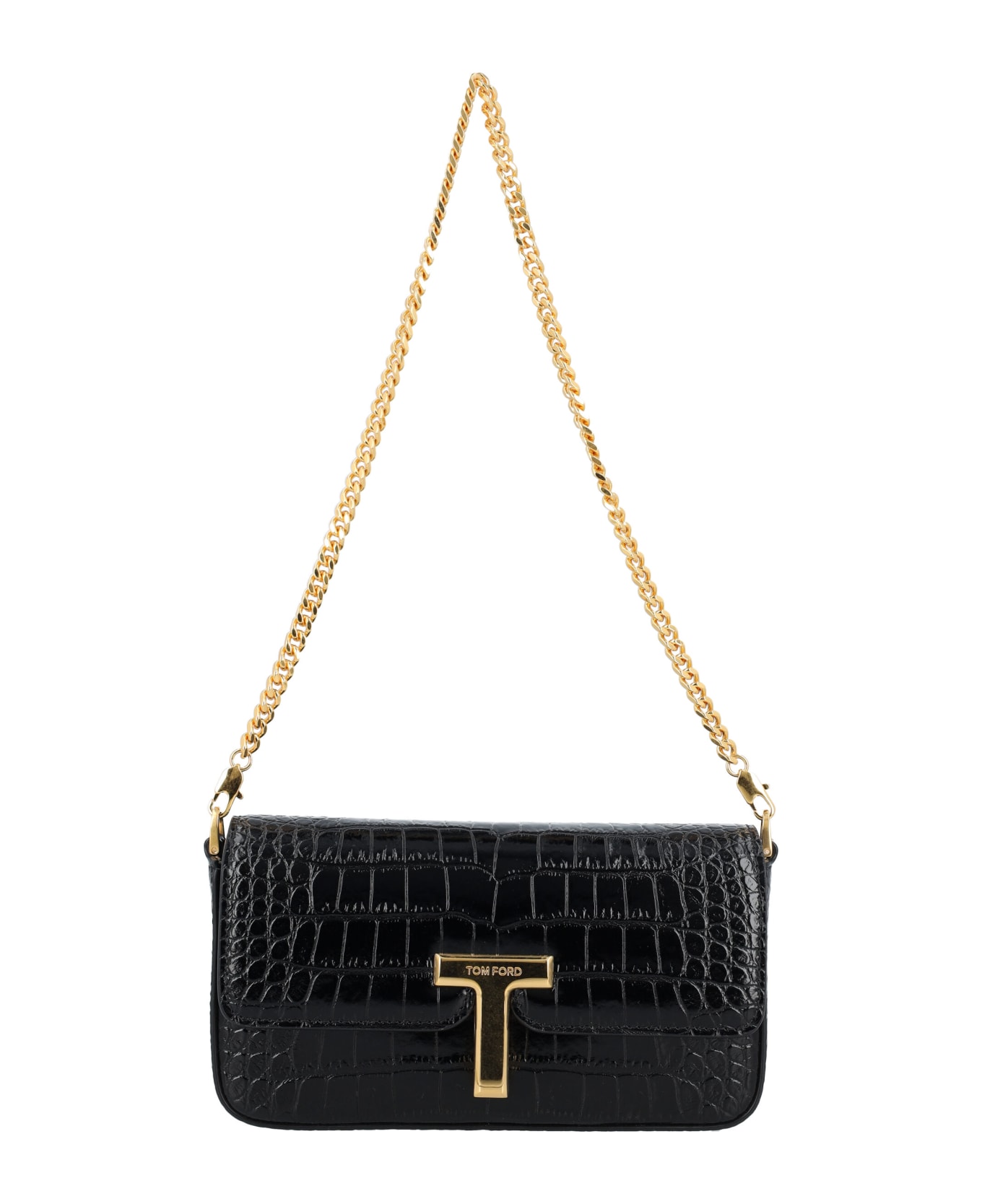 Wallis Mini Bag By Tom Ford. Featuring: Croc Embossed Leather Gold-tone Chain Shoulder Strap Signature T Logo Closure Interior Slip Pocket Magnetic Flap Closure