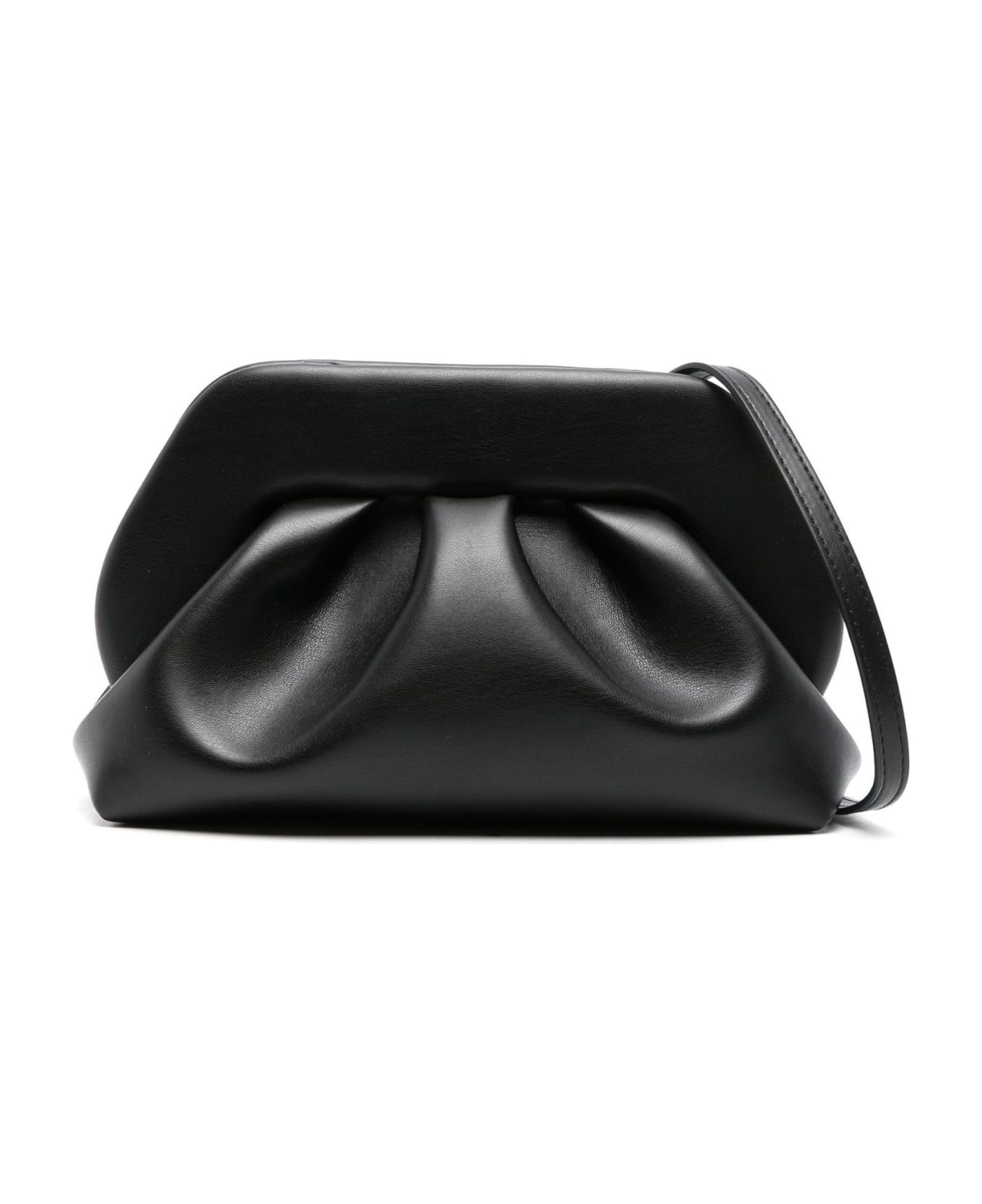 Bios faux-leather clutch bag, black, pleat detailing, concealed magnetic fastening, adjustable detachable shoulder strap, main compartment, canvas lining, gold-tone hardware, depth 10 cm, height 15 cm, strap 107 cm, width 26 cm
