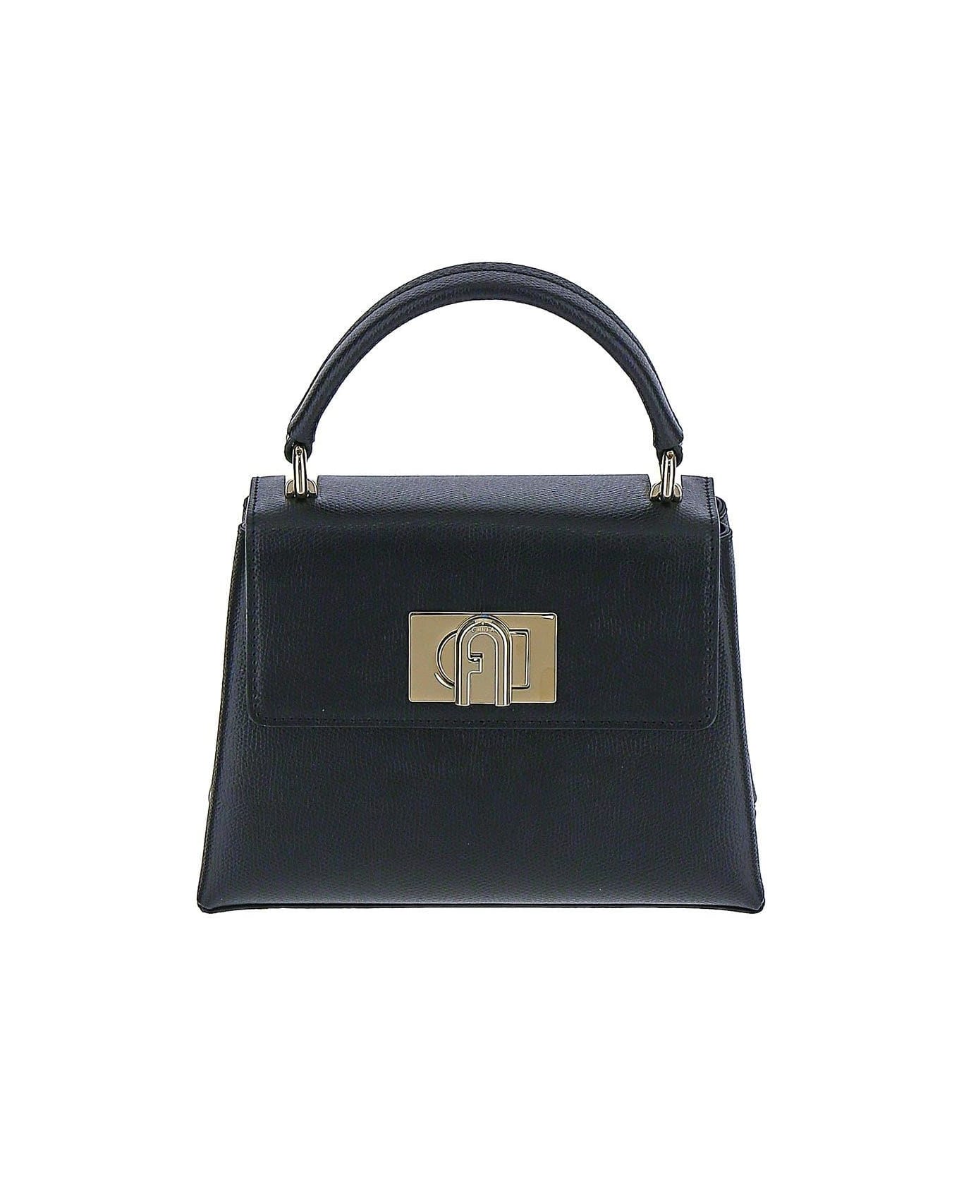 Furla mini bag in black leather with detachable strap. The item is featured by hook closure, inner pocket and single top handle.
