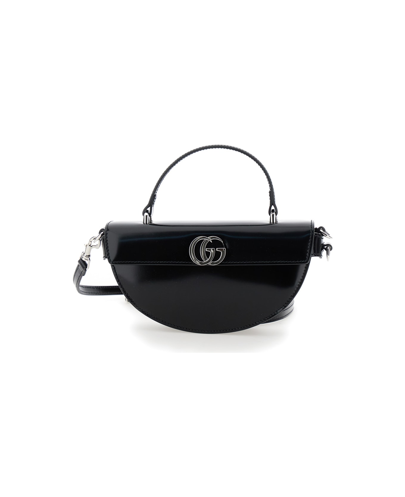 Handbag Black One top handle Adjustable and removable shoulder strap Turn-lock closure Double G logo plaque on the front Logo lettering on the rear Gold tone metalware Half moon shape Patent leather Dimensions: 22,5x11,5x5 cm
