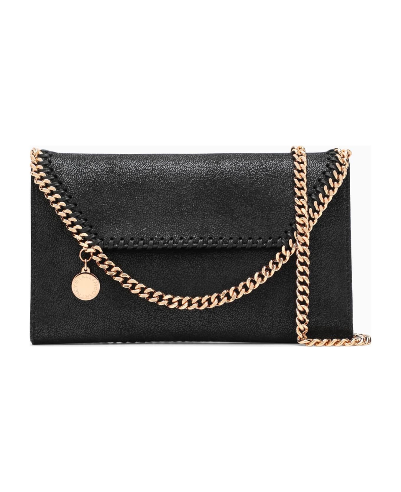Cross-body bag by Stella McCartney in black shaggy deer featuring gold-tone ruthenium chain and logo medal, flap closure with automatic button, internal logoed lining and internal slip pocket.
