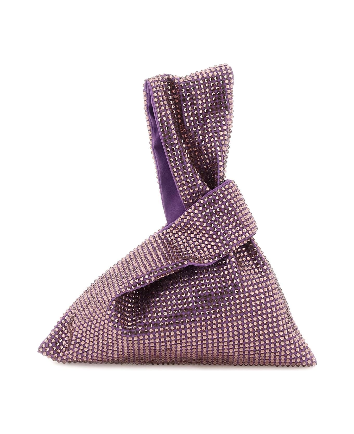 Handbag made of fabric with all over applied tone-on-tone crystals and asymmetrical handles. Lined interior.