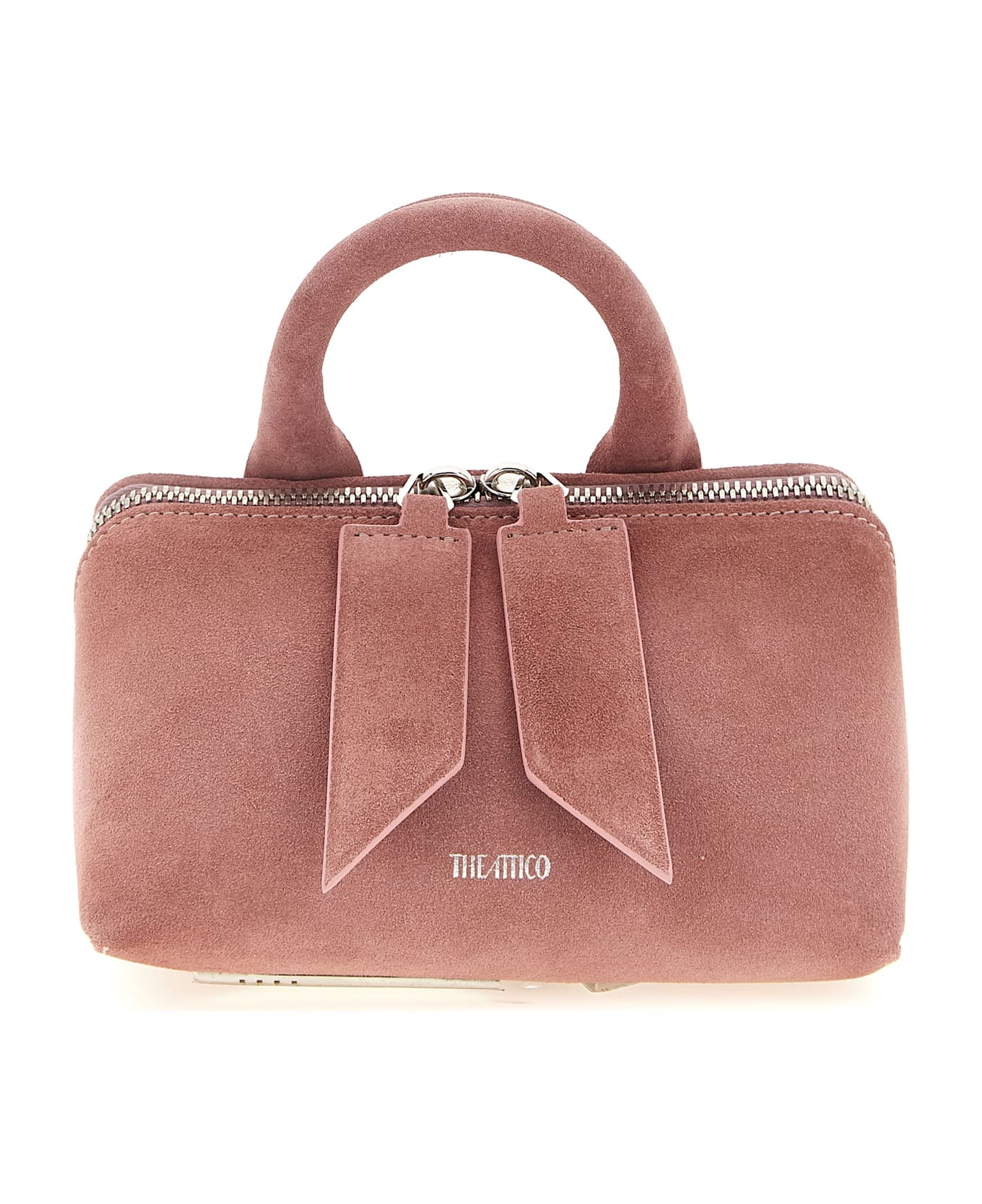 'Friday' suede mini handbag with front embossed logo, fixed tubular handle, top zip closure, rigid base with metal logo feet, removable shoulder strap that can also be used as a belt. Composition: 100% calfskin leather (Bos Taurus)