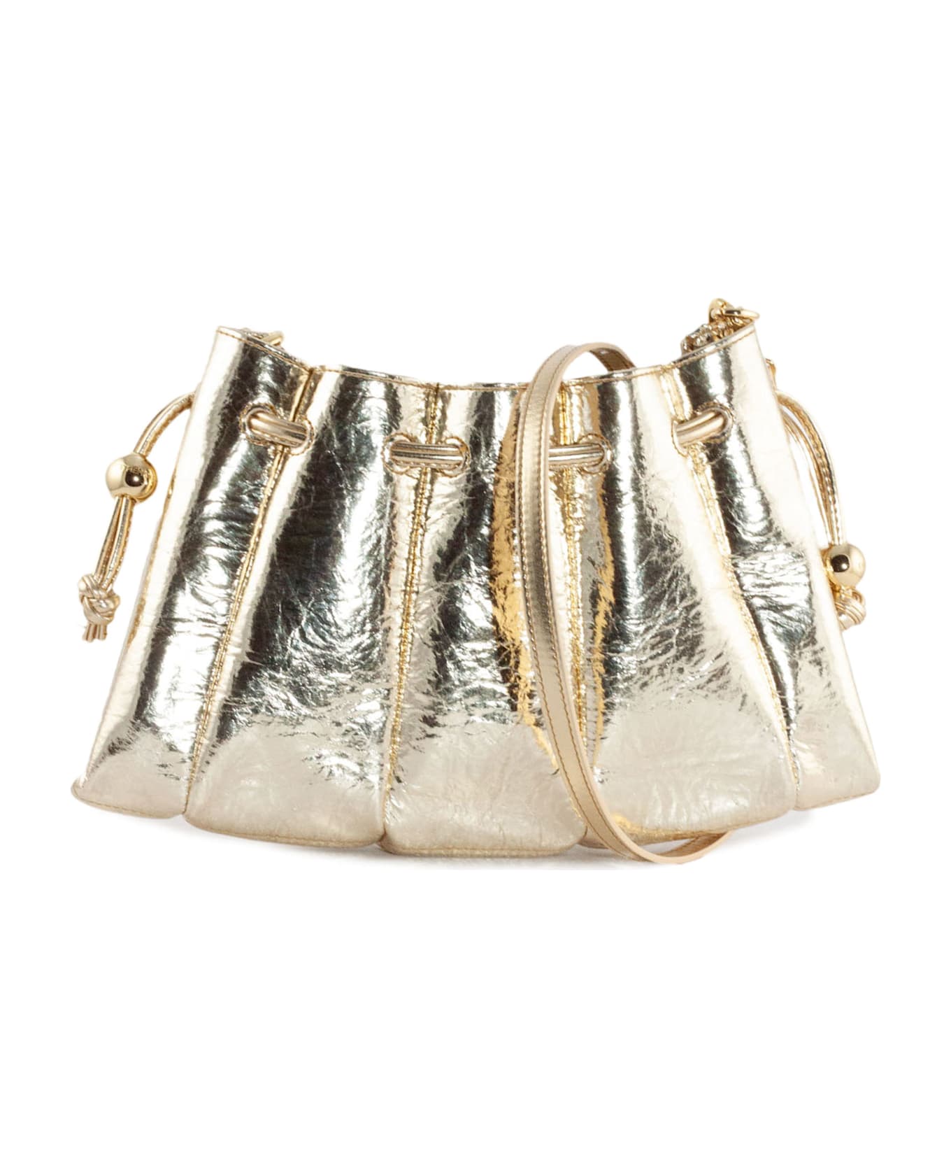 Gold-tone Dafne bag, adjustable lace closure, single compartment, adjustable shoulder strap, inside pouch, Depth 4 cm, Height 18 cm, Width 30 cm