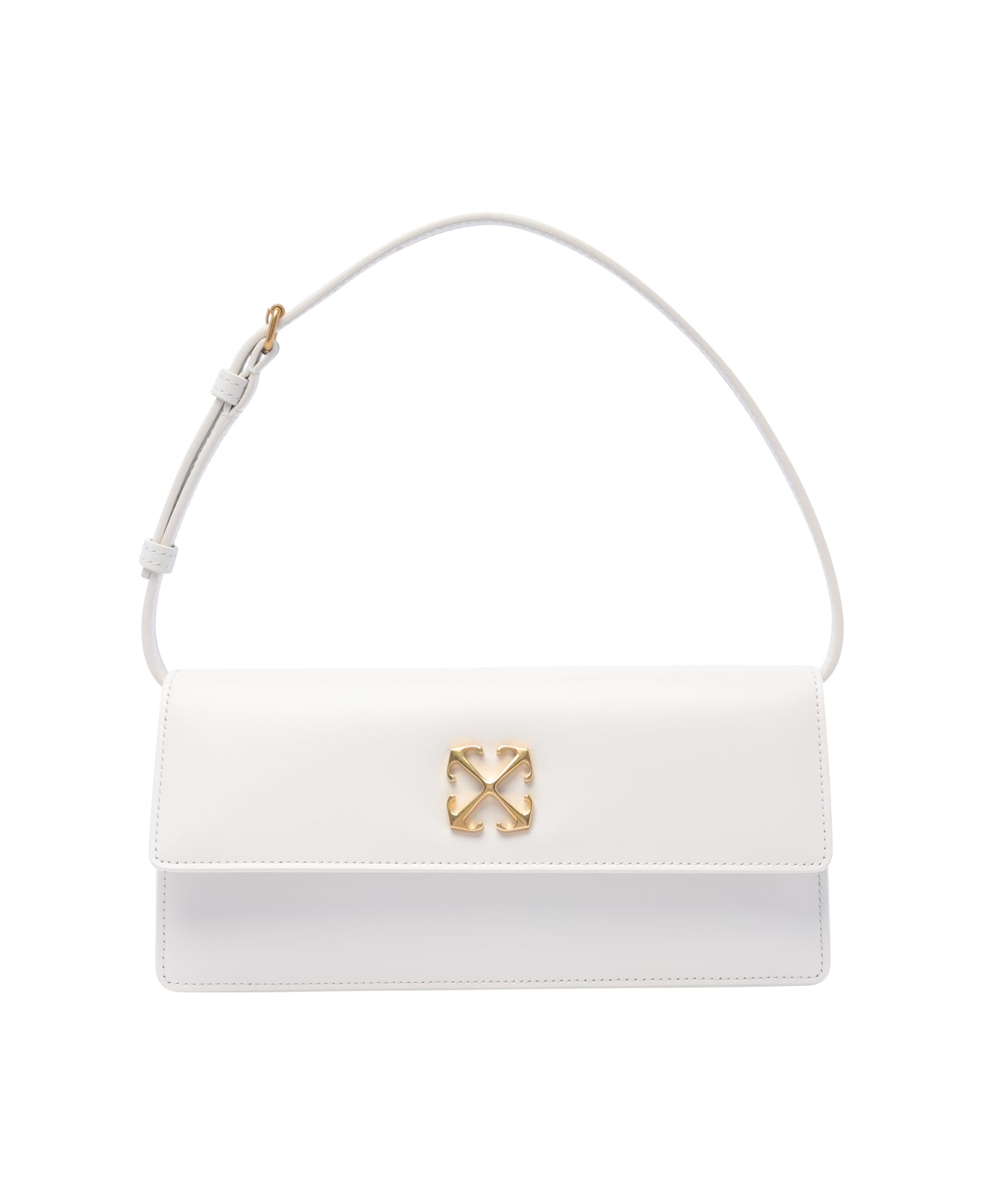 Off White white Jitney 1. 4 shoulder bag, magnetic closure, inner slot, external open pocket, frontal golden arrow logo